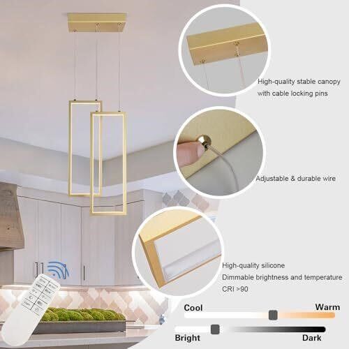 Stepless Dimming Pendant Light: The modern pendant light can be dimmable brightness and color temperature. 3 color temperature 3000K/4000K/6000K and 0%-100% brightness dimmable by remote control (included).