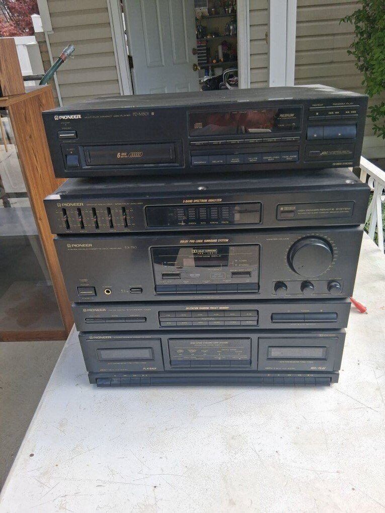 pioneer stereo. speakers cabinet.plus lots of speaker. wire.cd holders. complete set ready to start enjoying. been in storage so alittle dusty works awesome text me for more info. 801 513 8238 please text moving must sell obo also glass cabnet