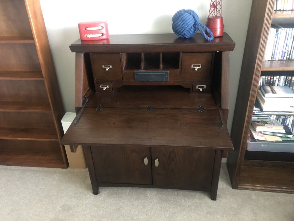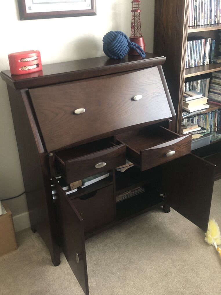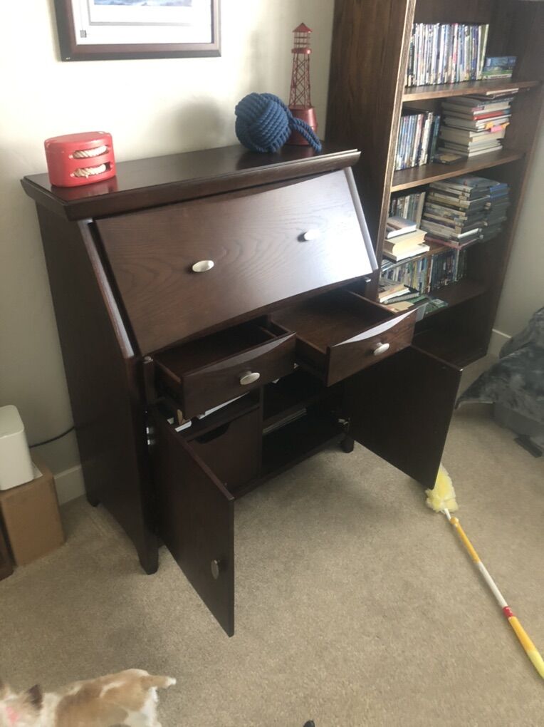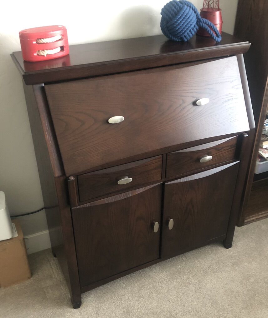 VenmoSolid, REAL WOOD WELL MADE. Mint condition. Has the drop down desk for writing, and drawers and storage. Drop-front Walnut Secretary Desk