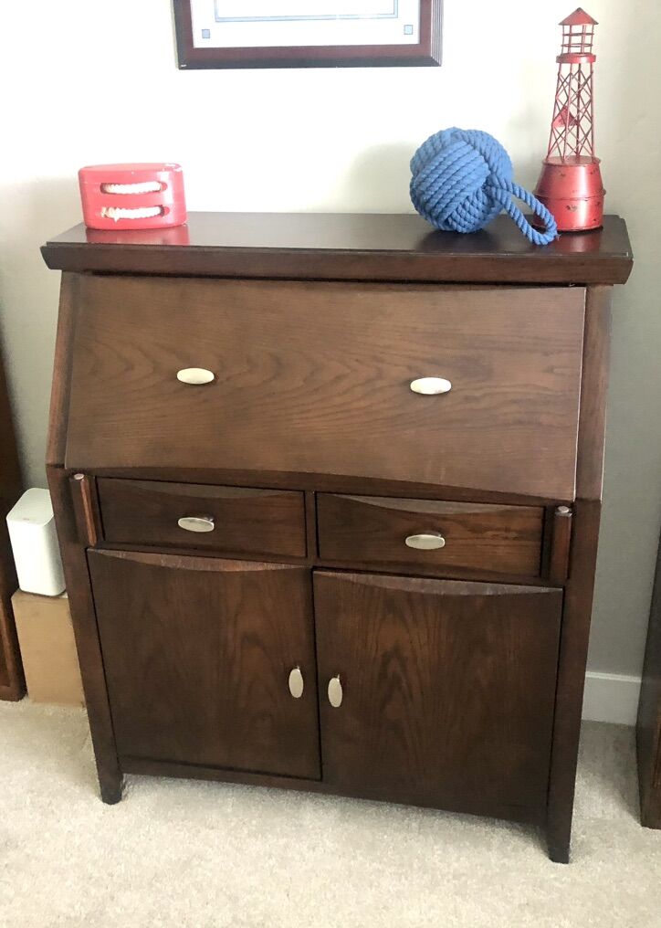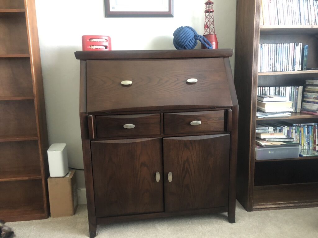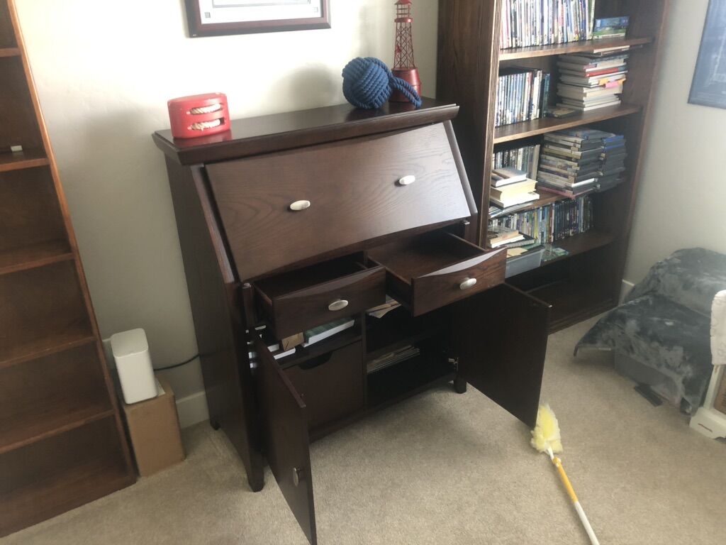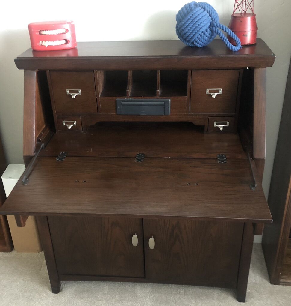 VenmoSolid, REAL WOOD WELL MADE. Mint condition. Has the drop down desk for writing, and drawers and storage. Drop-front Walnut Secretary Desk