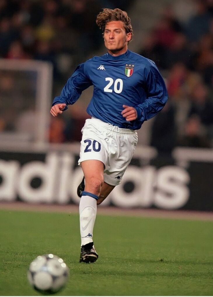 Francesco TOTTI #20 Italy Jersey 1999-00 Totti used to wear the number 20, 18, and 16 before taking over the 10 from Del Piero after the 2000 UEFA Euro