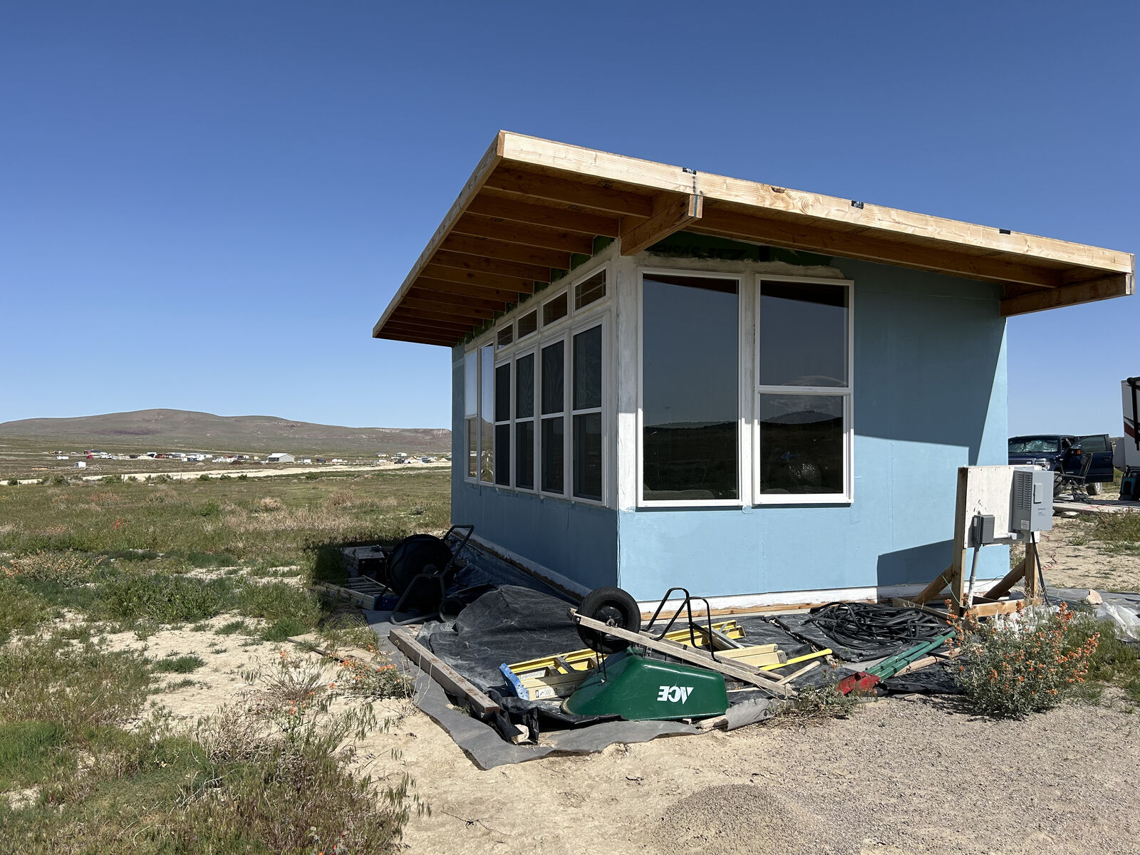Great opportunity to build your agricultural homestead in a great community. Prime lot for sale with well and 2500 gal water tank. Beautiful garden building with passive solar design and lots of windows. Great for starting plants or as a first temporary dwelling. Lot has gradual slope free of any drainage issues. Fully developed road access to lot, next to BLM land and shared open space.