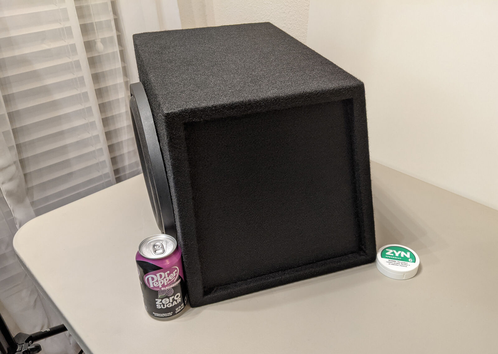 Venmobrand new competition speaker in slanted sealed enclosure, fiberglass reinforced edges throughout, 10ga internal wiring = there will be a lot of power in this very tiny sub box.