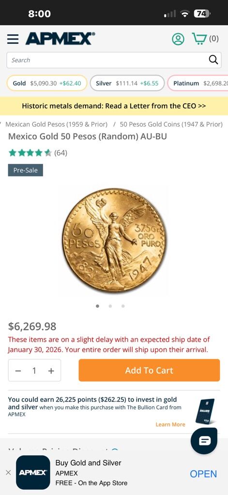 For sale 50 pesos gold coin 1.20 oz of fine gold Able to meet to test it for authenticity… Asking price 6000 cash only.