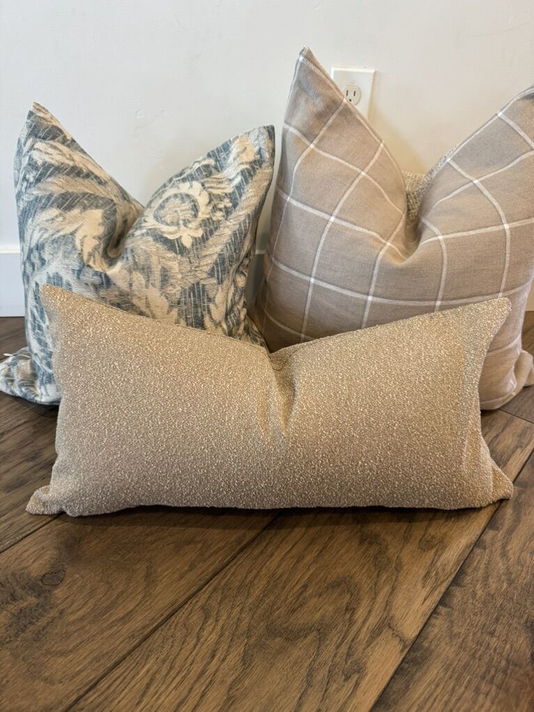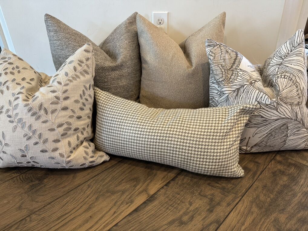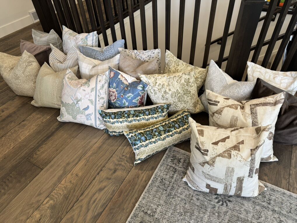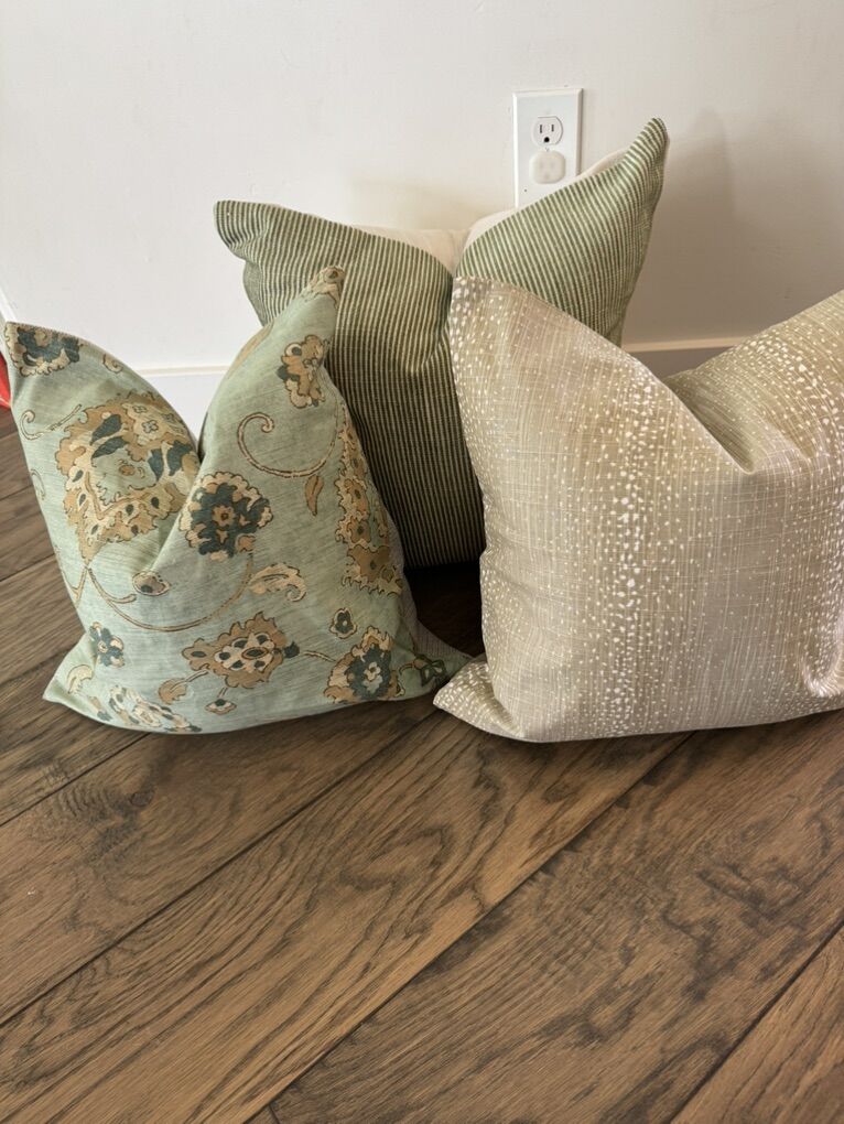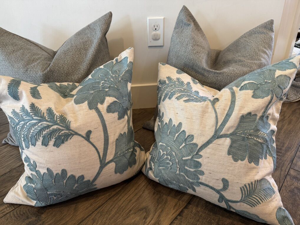 Lots of designer pilllows Individual prices below : 20x20 pillows are $40 22x22 pillows are $45 24x24 pillows are $50 26x26 pillows are $60 14x36 pillows are $75 12x24 pillows are $30