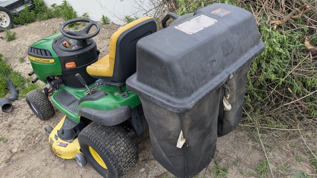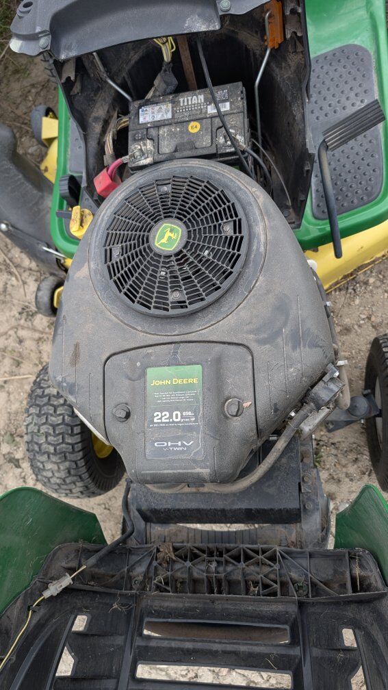 22hp John Deere engine. 48in deck. Comes with bagger system. Starts easily and runs great. Throttle stick works but broken stick. Get it before the stick is replaced and save.