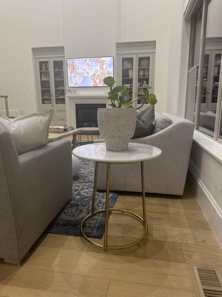 Similar to this in value and price ($1324)with this marble top side table: https://www.mcgeeandco.com/collections/side-tables/products/jocelyn-side-table?collection=side-tables&variant=40790777135179 (picked by designers at studio McGee)
