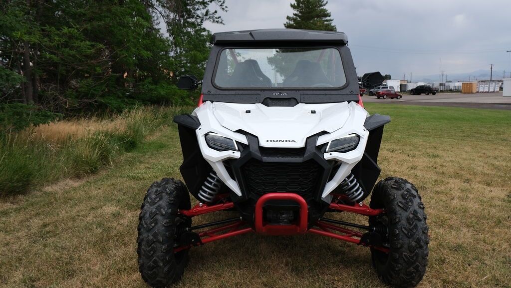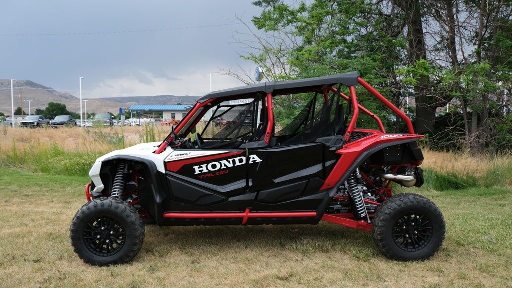 STOCK NUMBER: 2193 CUSTOM BUILD!!!! 2024 Honda® Talon 1000R-4 FOX Live ValveUNLEASH THE BEASTIf you want the performance of a Honda Talon 1000R, but also want to share the fun with more passengers, then step this way. That’s why we make our four-seater side-by-side Talon 1000R-4 FOX Live Valve. With the same great 999cc Honda Unicam engine and our automatic Dual-Clutch Transmission (DCT) driveline as our two-seat Talons, you get not only awesome performance but a level of refinement and comfort only Honda can offer. For 2024, we’ve updated the stadium seating, and our Talon 1000R-4 FOX Live Valve adds a premium, automatically adjusting active suspension package. If you like tight, technical trails, make sure you check out our Talon 1000X models too. But no matter which Talon you choose, you’re going to rule the off-road roost!Features may include:ENGINEPOWERFUL 999cc TWIN-CYLINDER ENGINESport side-by-sides need power, and you’re sure to find the Talon 1000R-4 FOX Live Valve offers plenty of it. The Talon 1000R-4’s 999cc liquid-cooled inline twin delivers the kind of powerful torque and quick-revving horsepower you’d expect from a flagship sport model, but is equally responsive in lower revs and in the critical midrange too. Rubber mounted, set longitudinally in the chassis and managed by our sophisticated PGM-FI engine-mapping system, it delivers the kind of refinement and dependability no other side-by-side can match.UNICAM CYLINDER HEAD DESIGNThe Talon 1000R-4 FOX Live Valve's 999cc liquid-cooled inline twin uses the same proven Unicam® cylinder head design found in our championship-winning CRF450R motocrosser. That helps make the engine more compact, which lets us position it for optimal weight distribution and ground clearance.CHASSISFOX LIVE-VALVE 2.5 SHOCKSOn the Talon 1000R-4 FOX Live Valve, these shocks incorporate FOX’s automatically adjusting Live Valve technology. The shocks are constantly changing their compression damping (each shock independently, in real time) for all four wheels. You get less body roll in corners, a smoother ride through whoops, and more resistance to bottoming—a deluxe ride overall.TIGHTER TURNING RADIUSBy fine-tuning the Talon 1000R-4 FOX Live Valve's wheelbase, we’ve also given it a tight turning radius. That makes tight maneuvering even easier, especially when you’re loading, unloading, or in really technical terrain.DRIVETRAINAUTOMATIC SIX-SPEED DCT TRANSMISSIONThe convenience of an automatic with the strength, control, and efficiency of a manual, our exclusive Honda gear-driven DCT lets you drive the way you want. Choose between manual mode or fully automatic. Plus, the addition of Sport Mode increases the fun, shifting at higher RPM for a spirited, full-performance driving experience. DCT puts you in control as to what engine speed you want, and what gear ratio. Or you can let it do all the shifting for you. In addition, you also get genuine engine braking and more efficient power delivery than a belt-driven CVT.DESIGNSTADIUM SEATINGThe Talon 1000R-4 FOX Live Valve features stadium seating for the rear passengers: compared to the front seats their seats are set almost three inches higher and two inches closer to each other, which gives those passengers a much better field of view. They’re not just looking at a pair of helmets in front of them—they get to enjoy the ride like everyone else. Forget about first class and coach—everyone rides first class in a four-seat Talon.