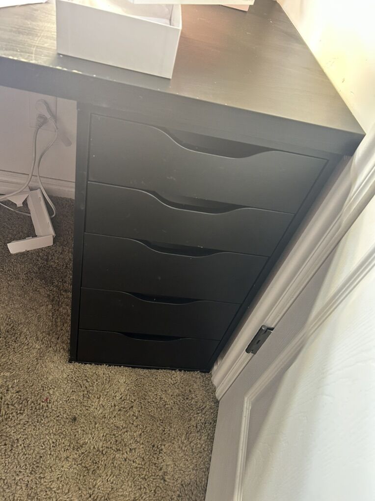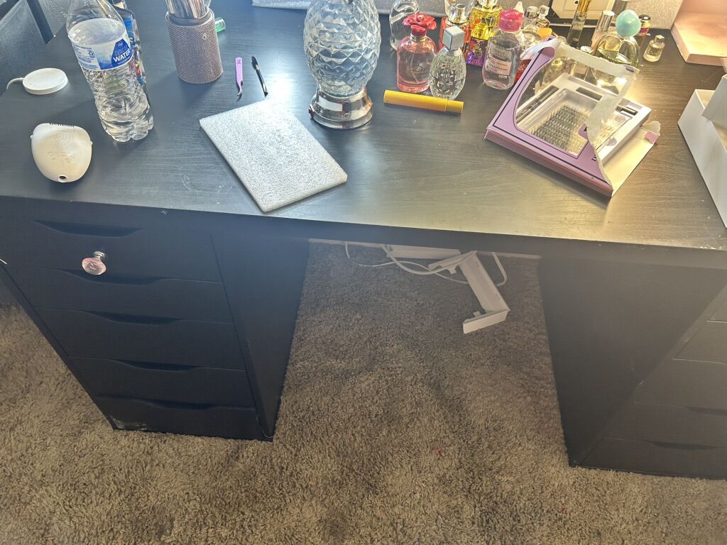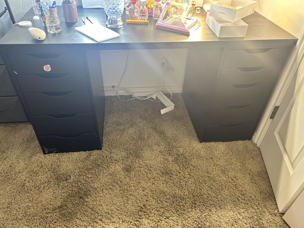Was going to run into a vanity but changed my mind need something smaller tabletop has a bit of scuffs. Can also be repainted. Also when moving one side came apart can be easily repaired with a screw. All drawers work well
