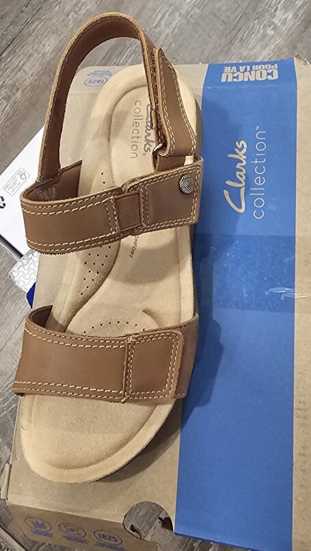 VenmoPrepped for breezy warm-weather wear, Clarks April Clover sandal boasts soft, strappy leather uppers for a classic look and feel. Clarks Ultimate Comfort footbed keeps every stride light and free, while a grippy outsole brings extra stability to this ultra-versatile pair.- Premium leather upper- Adjustable strap for a secure, custom fit- 5mm Ultimate Comfort PU foam footbed gives supreme cushioning for all-day wear- Flexible, stabilising TR (thermoplastic rubber) sole- Heel height: 25mm