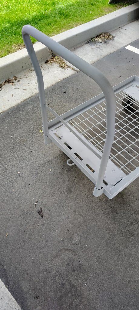 Really cool is this extra large heavy duty industrial type flat cart with removable handle and can transport items that weigh over a 1000 pounds and is approximately 30" wide by 42" Long and at this price that's a steal.