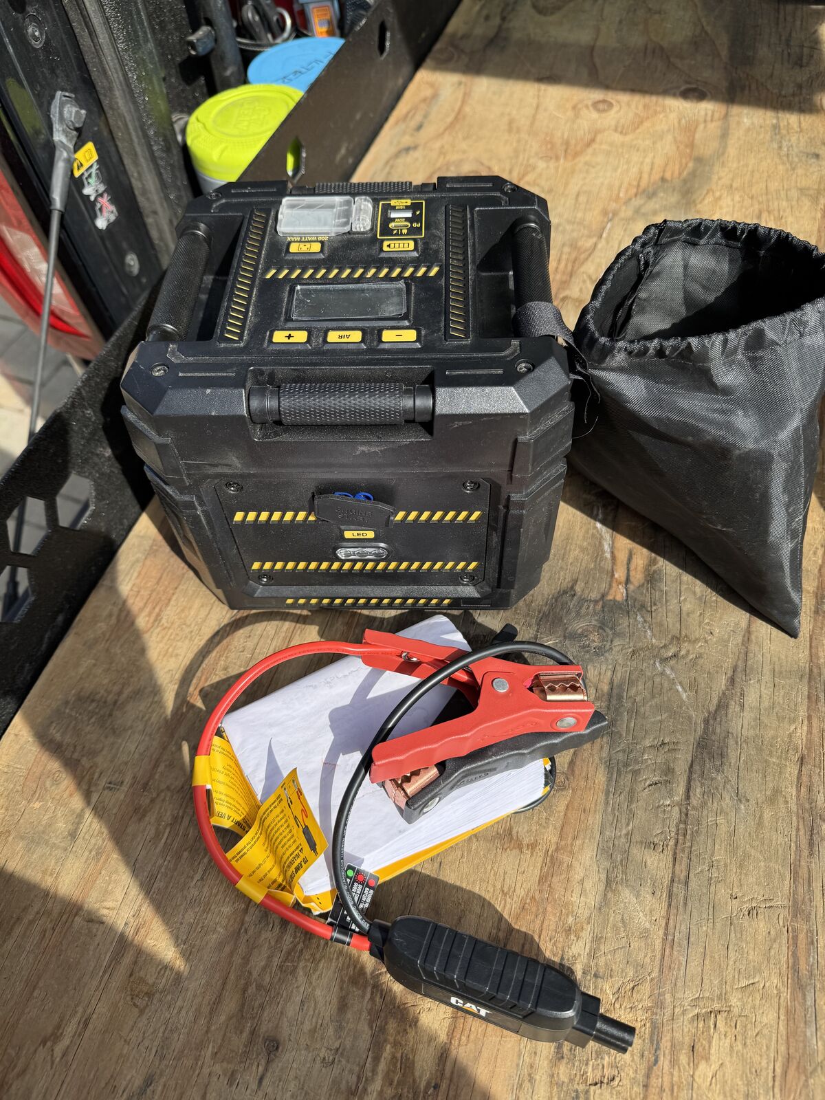 Sells new for $140+tax, all works perfect, only needed to use it one time and worked great (still has clear protective sticker on screen- its basically just sat on a shelf) has manual & cords that came with it. I received another jump starter as gift and dont need 2 of these.