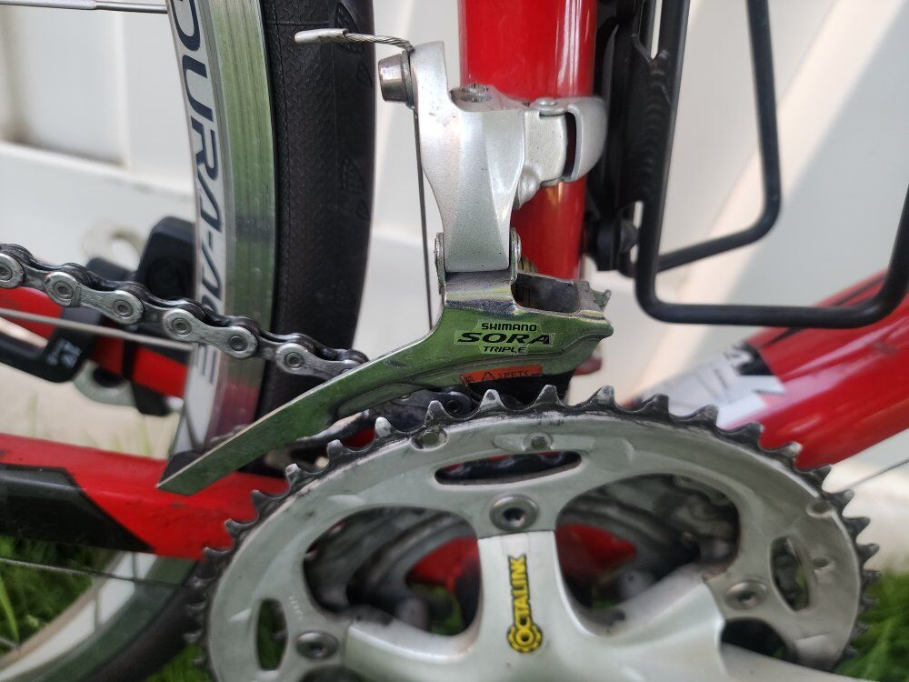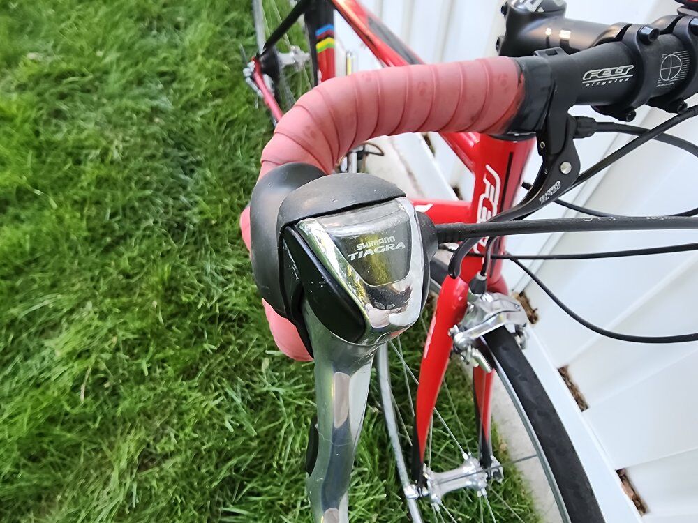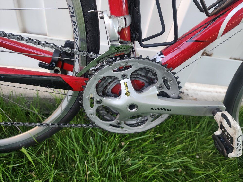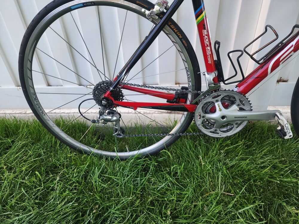 Aluminum frame w/ carbon fork 3x10 30 speed Shimano Dura-Ace wheels & brakes Tiagra brifters and rear derailleur Sora front derailleur
