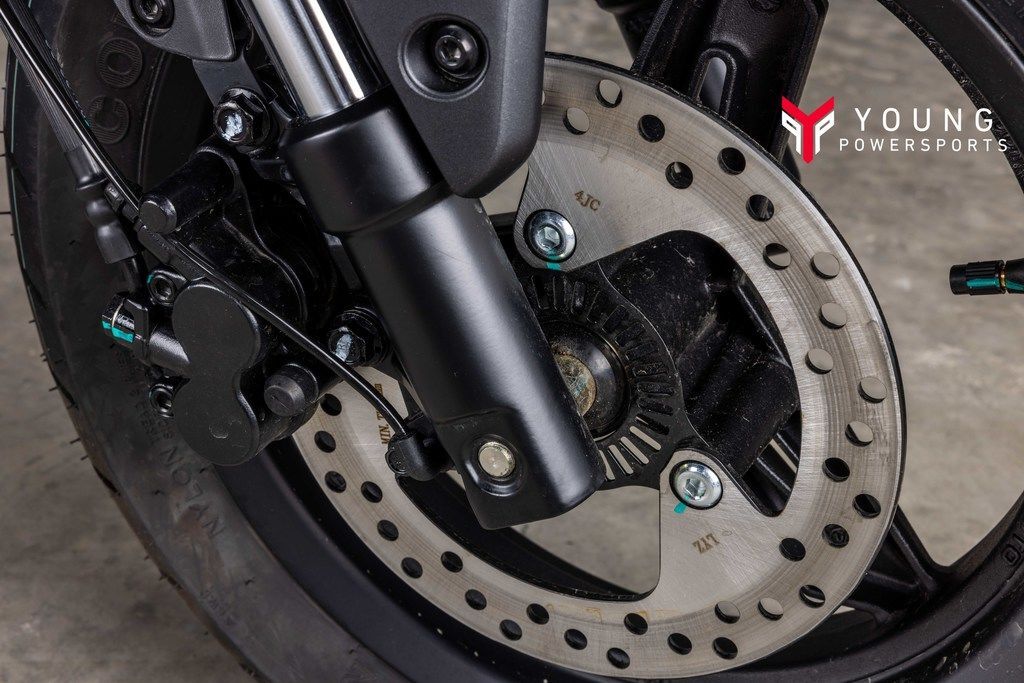 Powerful brakes featuring ABS ensure responsive and reliable stopping power. You get a large 210mm single-disc front brake and a 190mm single-disc rear brake with a single-piston floating caliper.