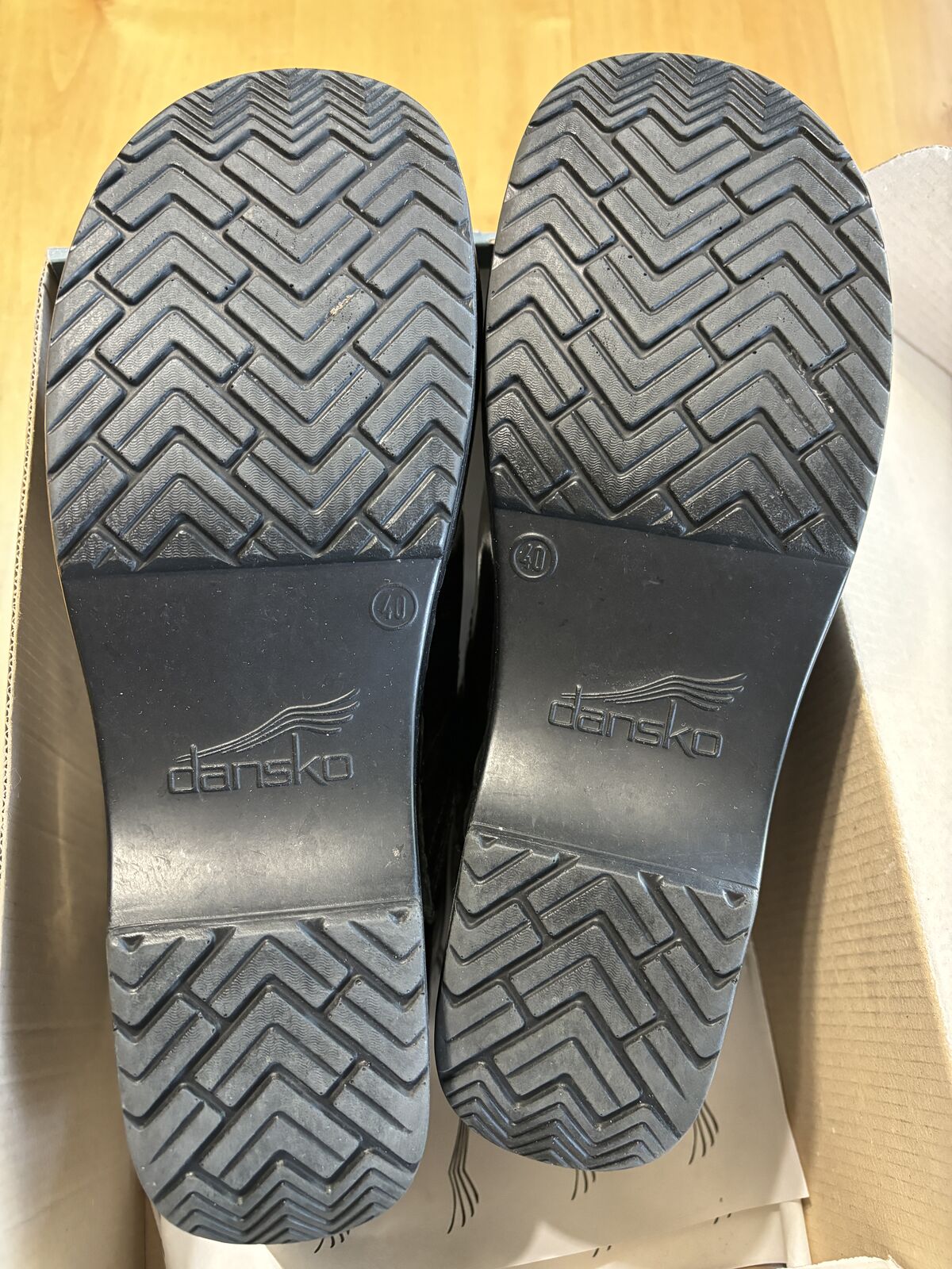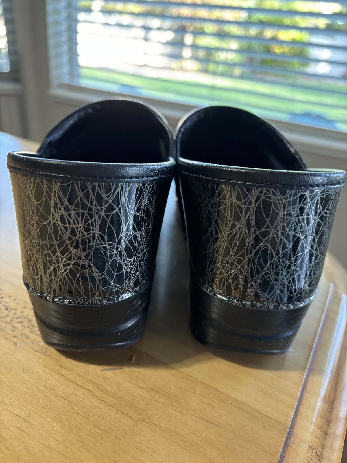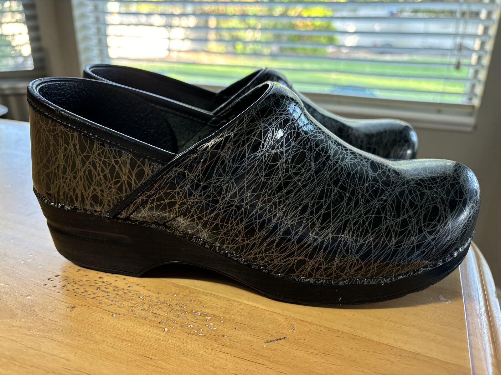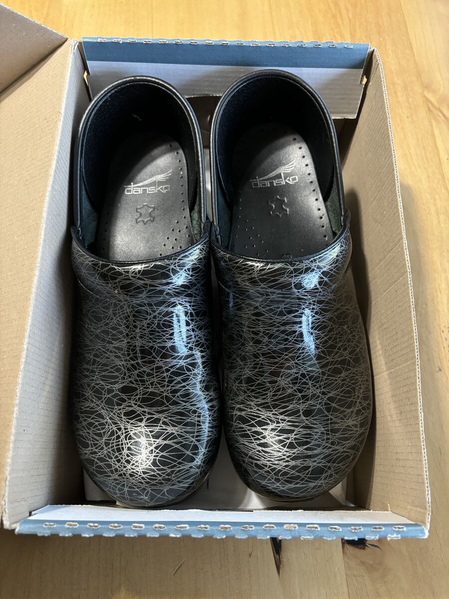 VenmoProfessional clogs shoe size 40, 9.5-10, color black patent leather silver scribble, style 706990202, comes in original box, shoes have not been used.