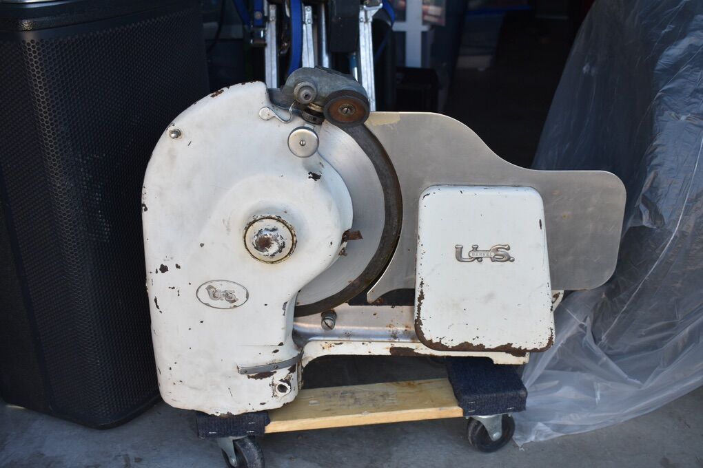 VenmoThis is a vintage meat slicer. The motor runs and the blade spins. The slider for the meat moves freely. It has some rust and chipped paint. I’m not sure but it might be missing a guard. I think it has the sharpener intact.