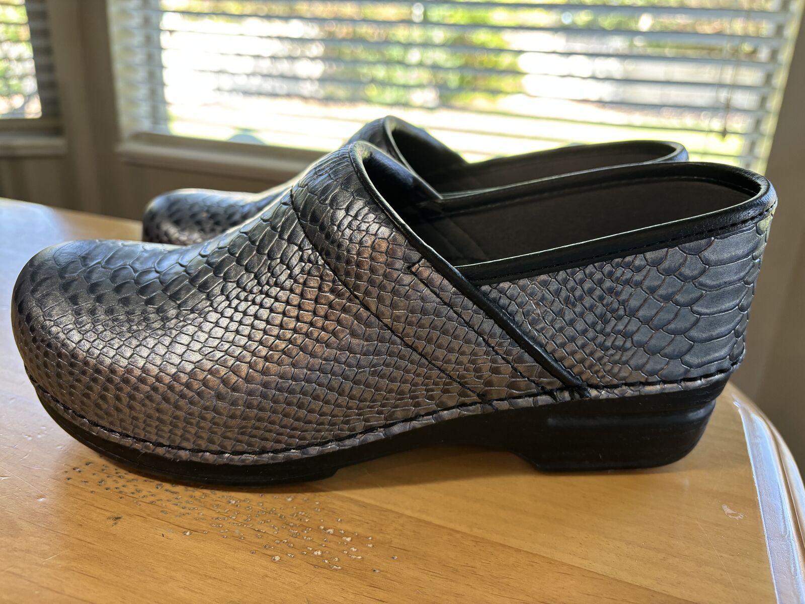 VenmoDansko women's XP Pro Clog, color Silver Snake Skin, shoe size 40, 9.5-10 shoes have not been used