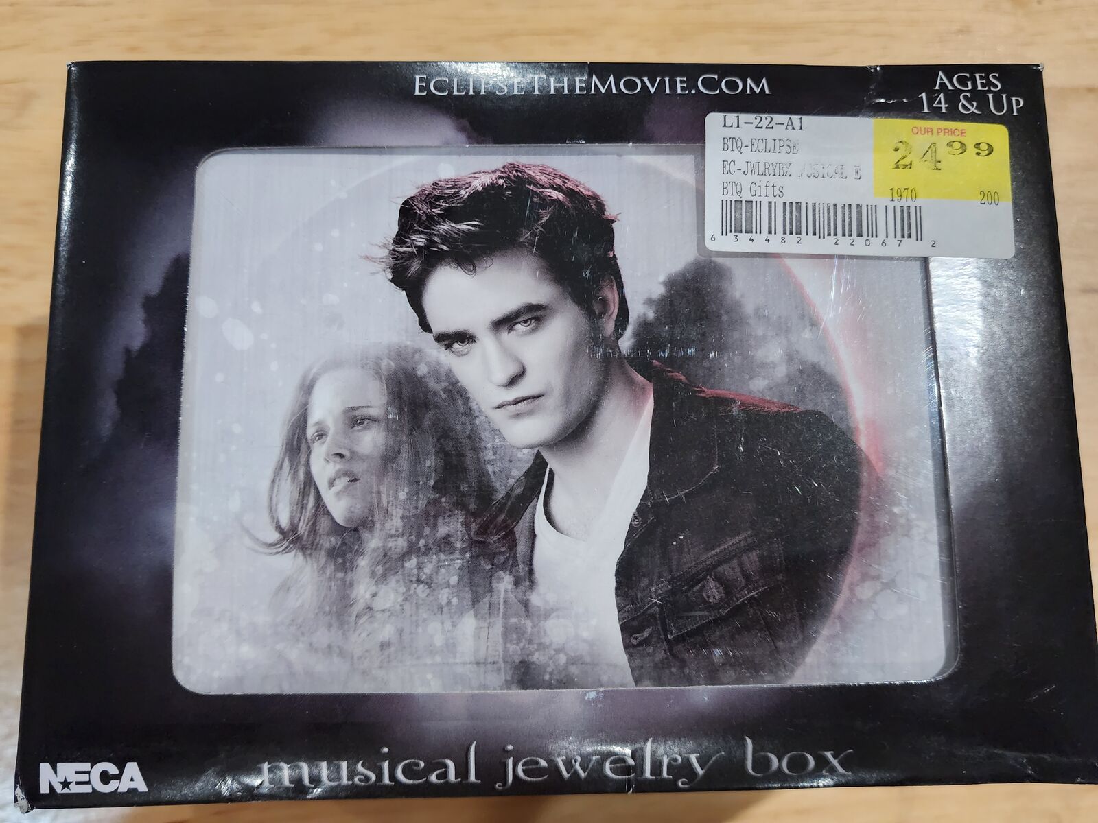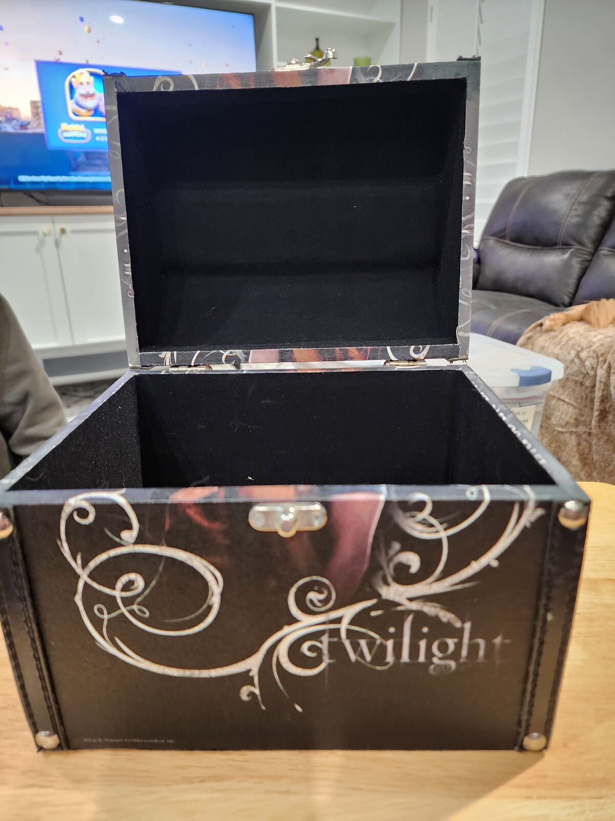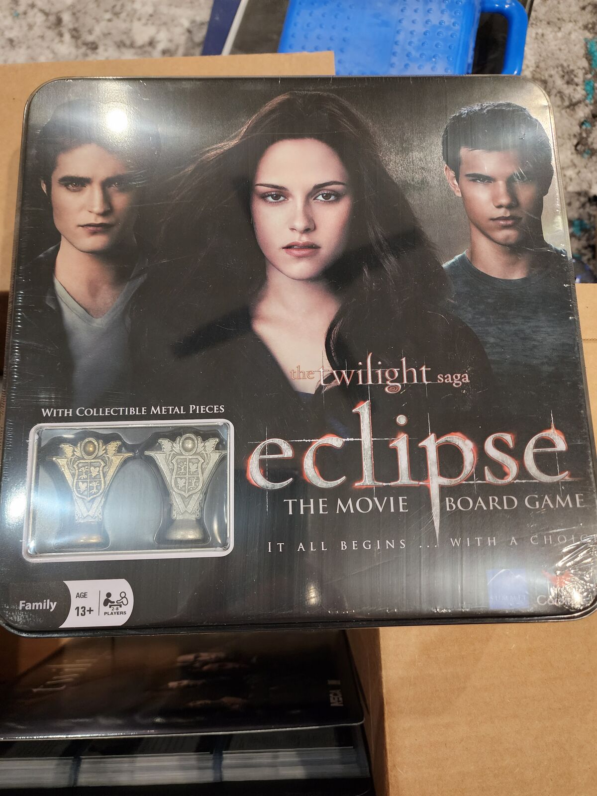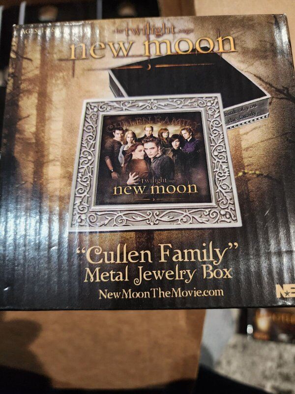 VenmoWe're selling our entire collection of Twilight items. These are all new (never been used). Prices on all items are negotiable, as it's a bit difficult to get an idea of their worth. I can supply additional photos of items if needed. Twilight board game $15 New Moon board game $15 New Moon board game $15 Eclipse Board game $15 Twilight/New Moon Chests $75 each Assorted key chains $3 each Edward and Bella Grey bag $5 Twilight pins $5 each set Edward Duvet cover $35 New Moon vinyl record with picture $35 New moon metal waterbottles $15 each Twilight wallet and key chain set $25 Twilight perfume $35 Twilight/New Moon/Eclipse Musical Jewelry Box $20 each New Moon card games $10 each Twilight/New Moon rings $40 Edward New Moon candle $10 Coffee Mugs $5 each USB Drive $5 Twilight Magnetic Puzzle $15 Twilight Journals $15 Lunch Boxes $50 each Forks Twilight folder and gear $10 Twilight Binder with full set of trading cards $100 Edward and Jacob Sweetarts $5 each Bandaids $10 Edward and Jacob Stainless bottles $20 each Twilight/New Moon Metal Jewelry Boxes $30 Miscellaneous jewelry $5 each Twilight/New Moon magnet sets $5 each Pencil bag $5 New Moon trading cards $10