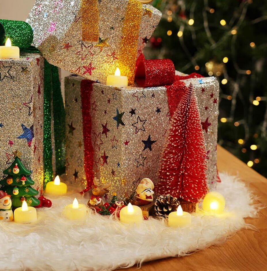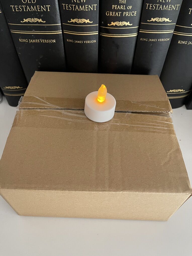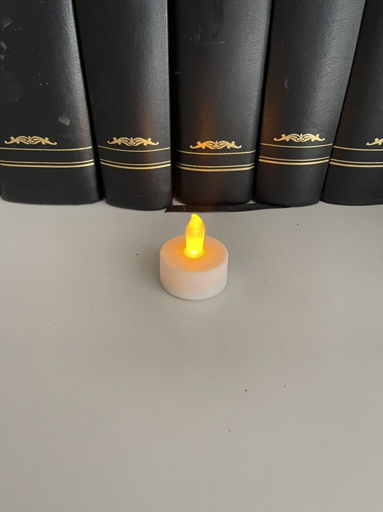 PayPalI have this pretty set of tea lights for sale. They are new in the box and contain 50 tea lights! You twist them to turn them on or off. I have 2 boxes available.