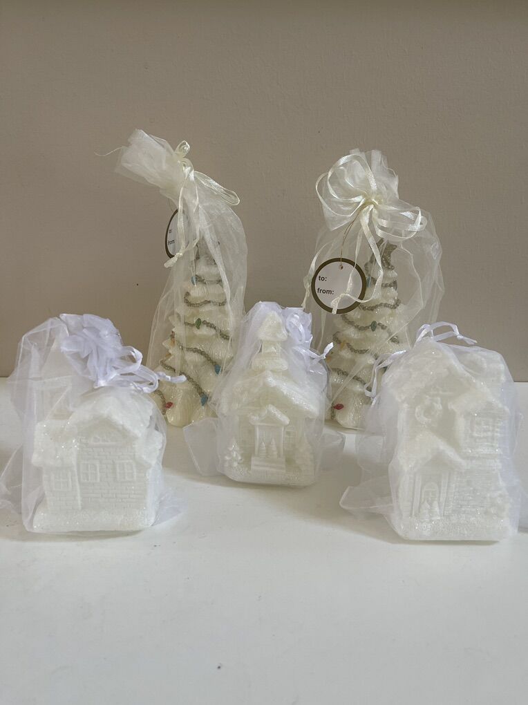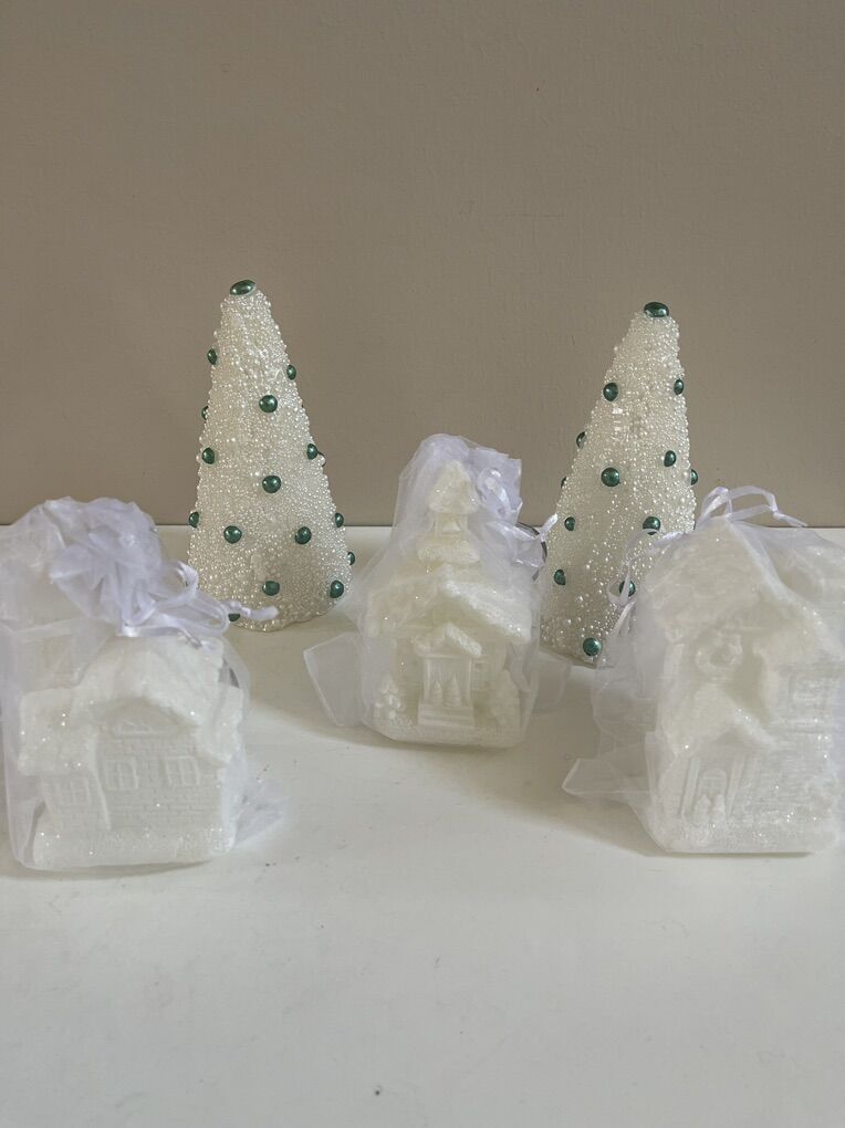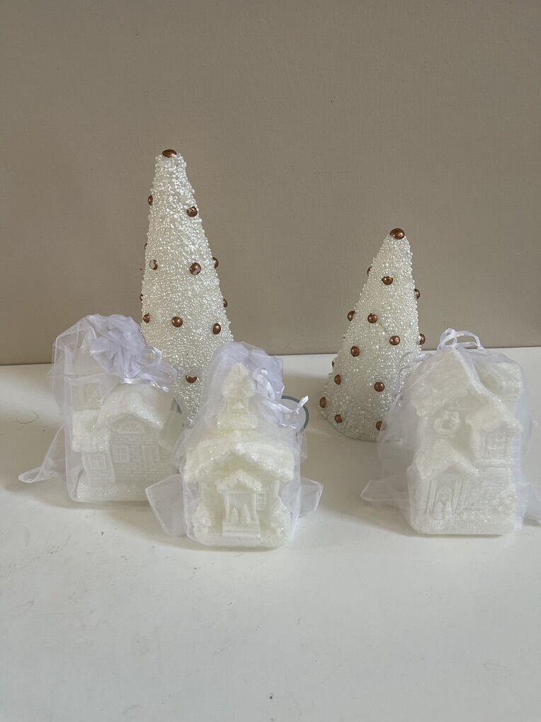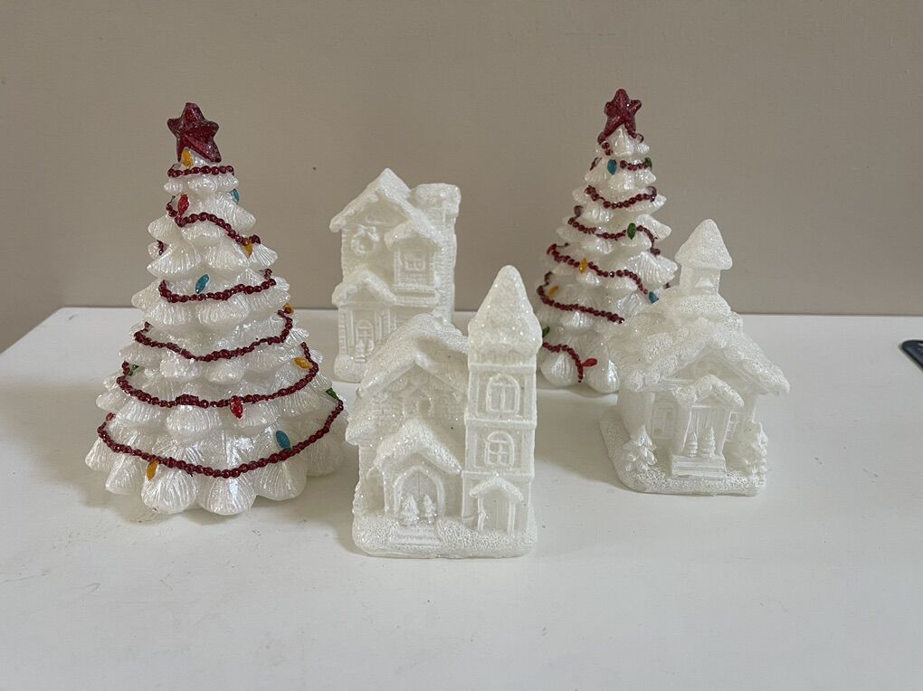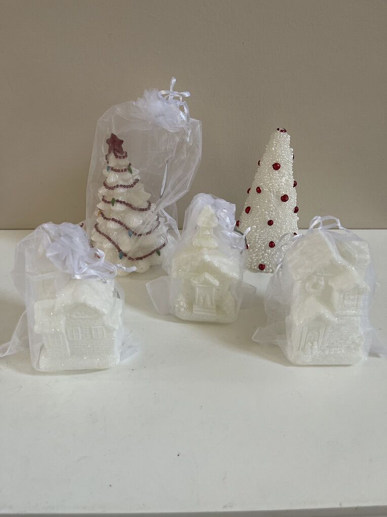 PayPalI have this little, pretty LED Christmas village for sale. The houses are about 3” tall. The trees are 6” tall. They would look great in a windowsill. The houses come with batteries, but the trees do not. The lights flicker and give off a soft glow. They’re made of wax. I have five sets available for $15 each set. (Each set has different trees) These are new!