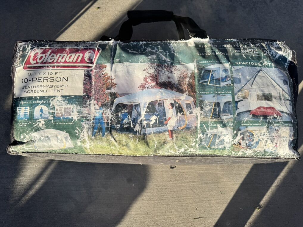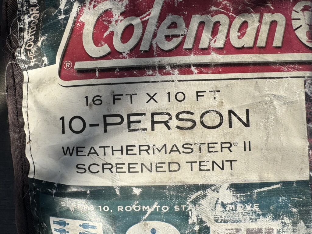 ApplePayColeman 10 Man 16'x10' Screened Tent Weather Master 2 Great family tent. Can separate into 2 sections. One section can easily fit 2 play pens. Fits 4 queen size mattresses. Quick 20 minute setup.