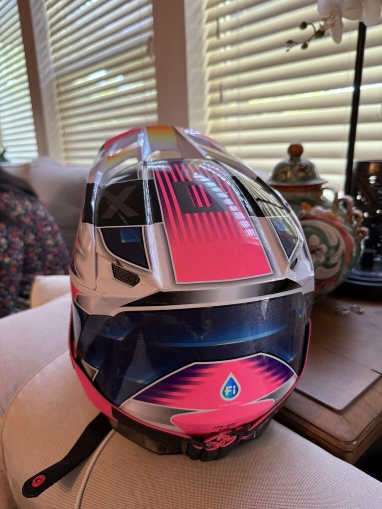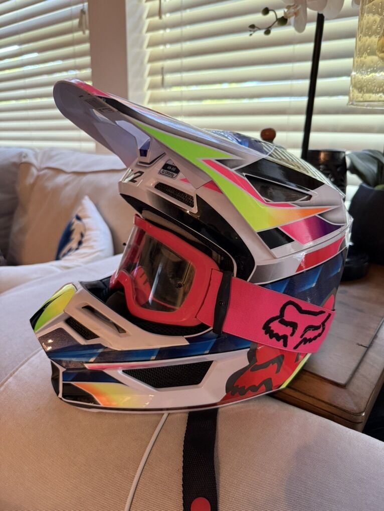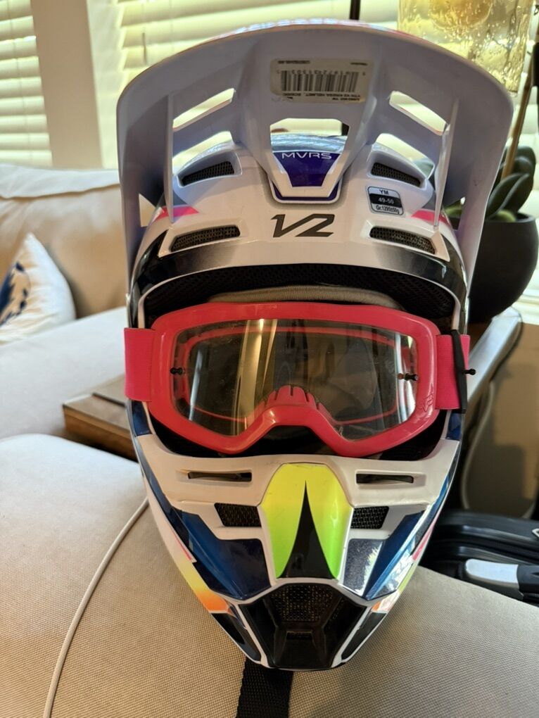 VenmoV2 ATV helmet with goggles. Only used a few times, a few scratches. Interior clean. Goggles are included. Too small for my daughter.