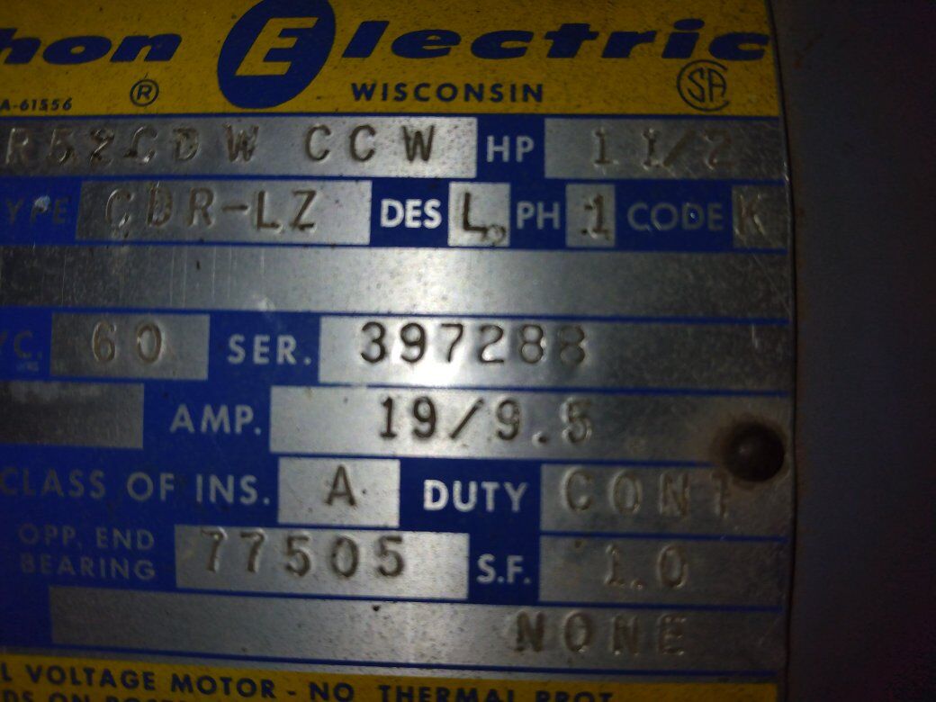 1.5 horse power, 115/220 volts single phase with clutch pulley, very heavy motor. I am locateda few miles west of logan utah.