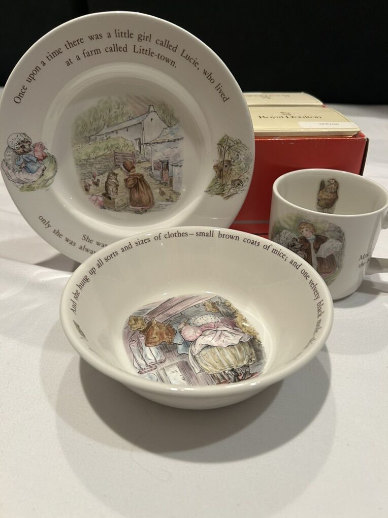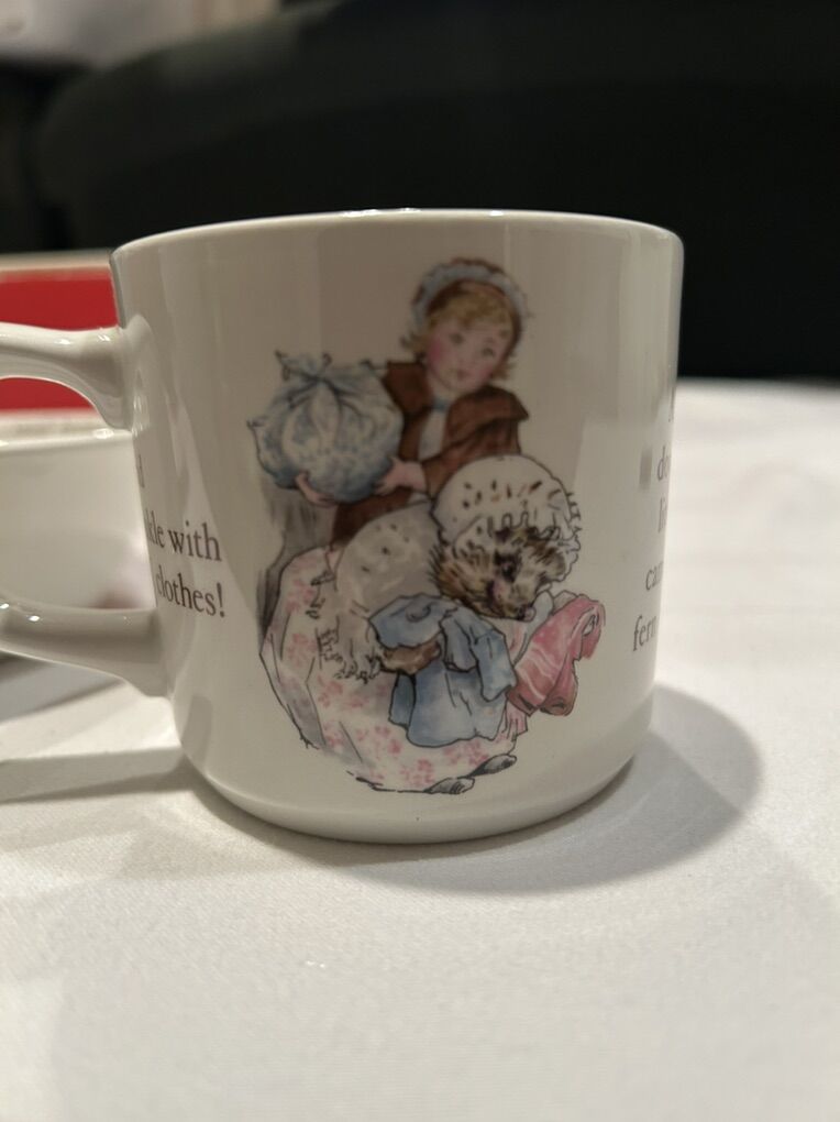VenmoWedge wood Mrs. Tight-Winkle bowl, cup, and plate. Made in England. In new condition. Asking $15 for all 3.