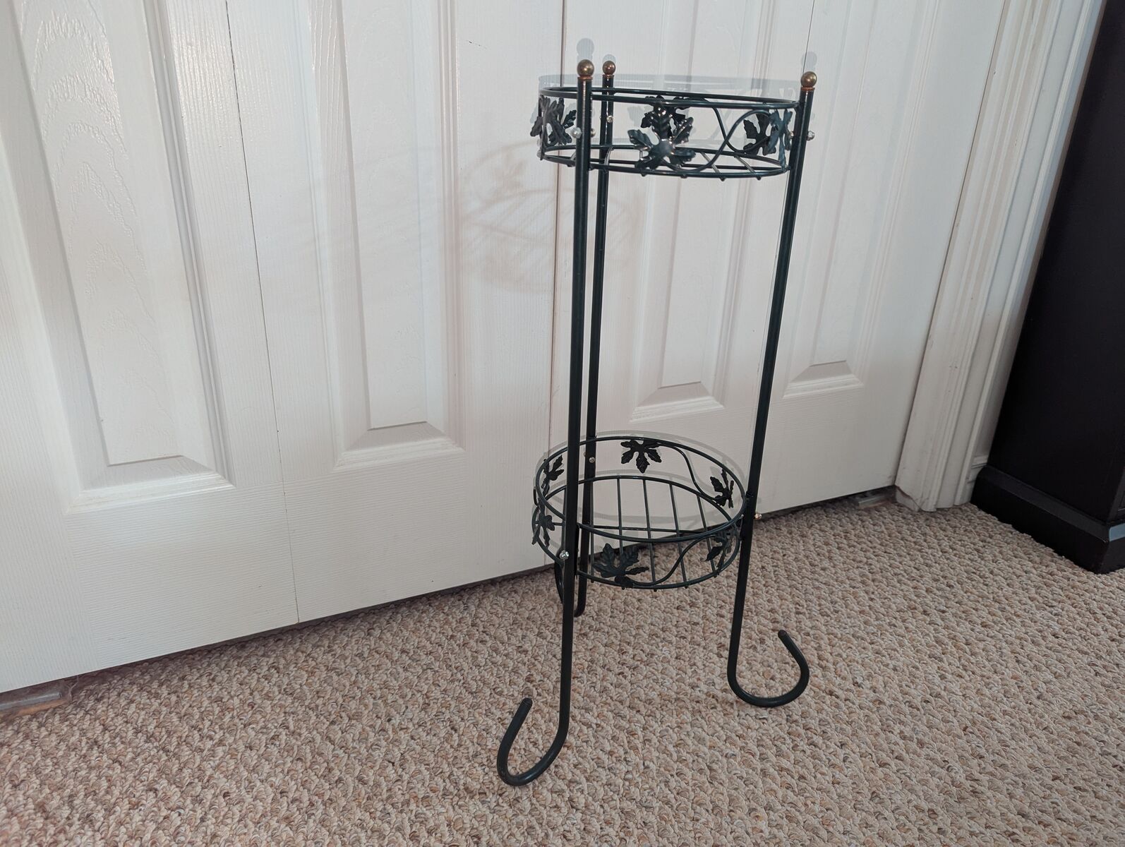 Plant Stand Green Metal Two Level