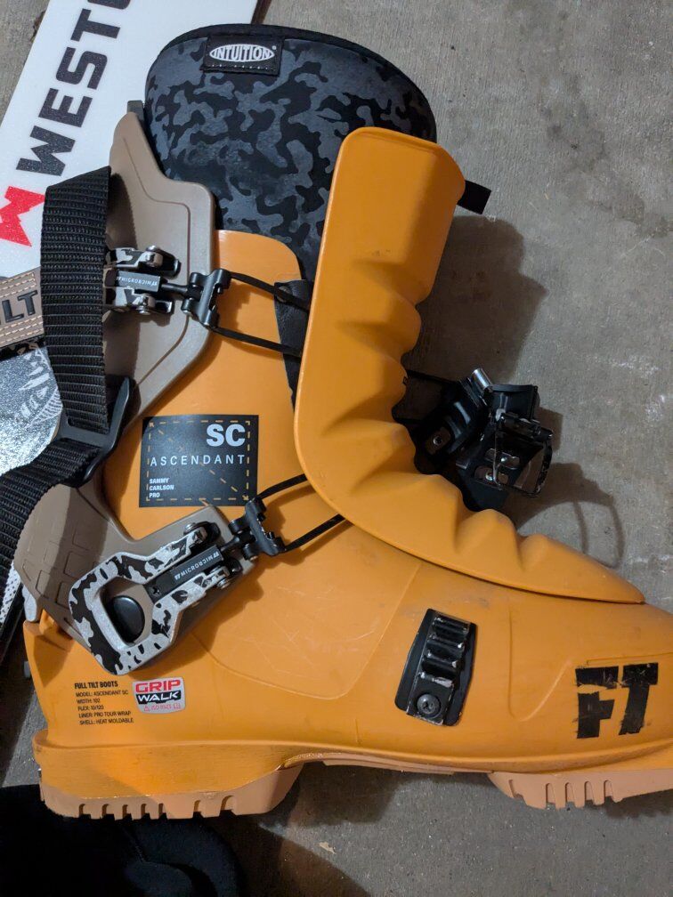 used 3 times is my loss your gain. Carbon Westons 166cm long, 138, 112,127cm tip underfoot and tail. Atomic Shifts mounted at factory recommendation for boots 28/28.5 mondo 10/10.5 US mens boot, Full Tilt Ascendant Sammy Carlson edition 120 flex (love these boots). skins are still sticky with only 3 rides on them. adjustable 4Front Uptrack poles carbon and titanium/aluminum super light and easy to use. 1000 or make an offer cause i need them gone asap