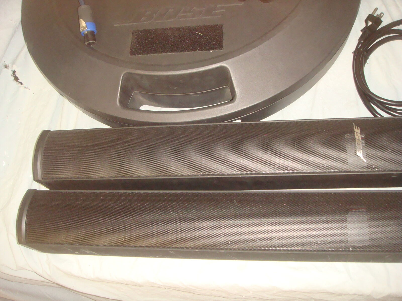 BOSE L1 CLASSIC LINE ARRAY PA SYSTEM. This is a used Bose Line Array PA speaker system that comes with everything shown in the photos including the power base, remote, line array tower speakers, B1 Subwoofer and Cases for everything (the case for the line arrays isn't factory but the rest are). This is an incredible PA system that is all that's needed to fill small to medium venues. This is a very heavy duty system that's more robust than any of the newer Bose Line Array systems and will play louder as well. It comes with everything shown. This is your chance to save big-time so don't miss out!!