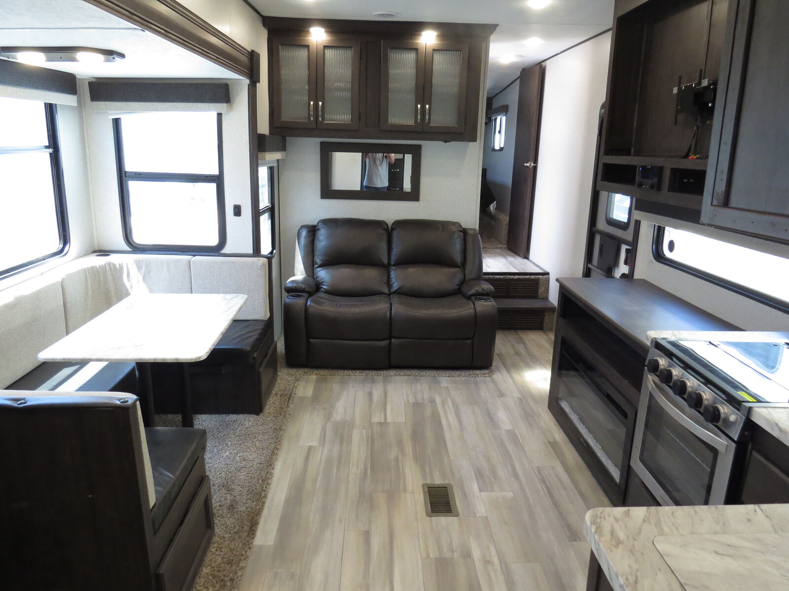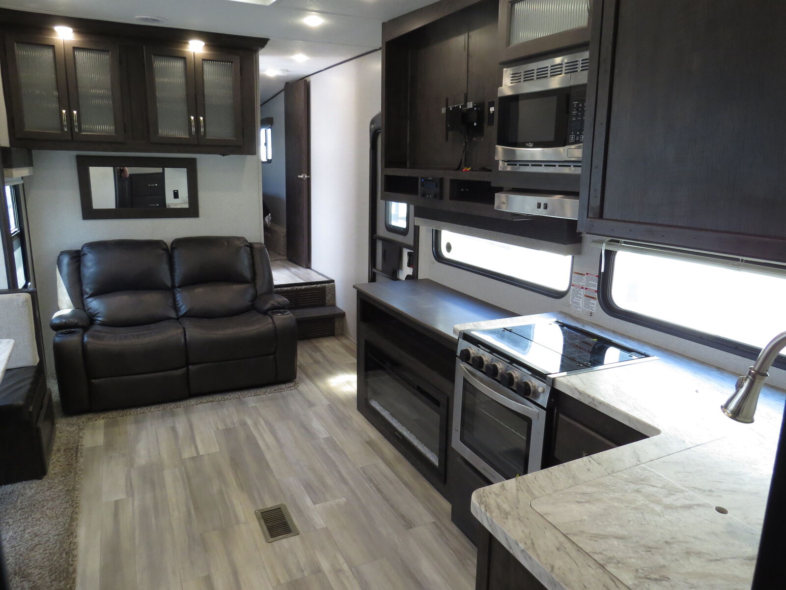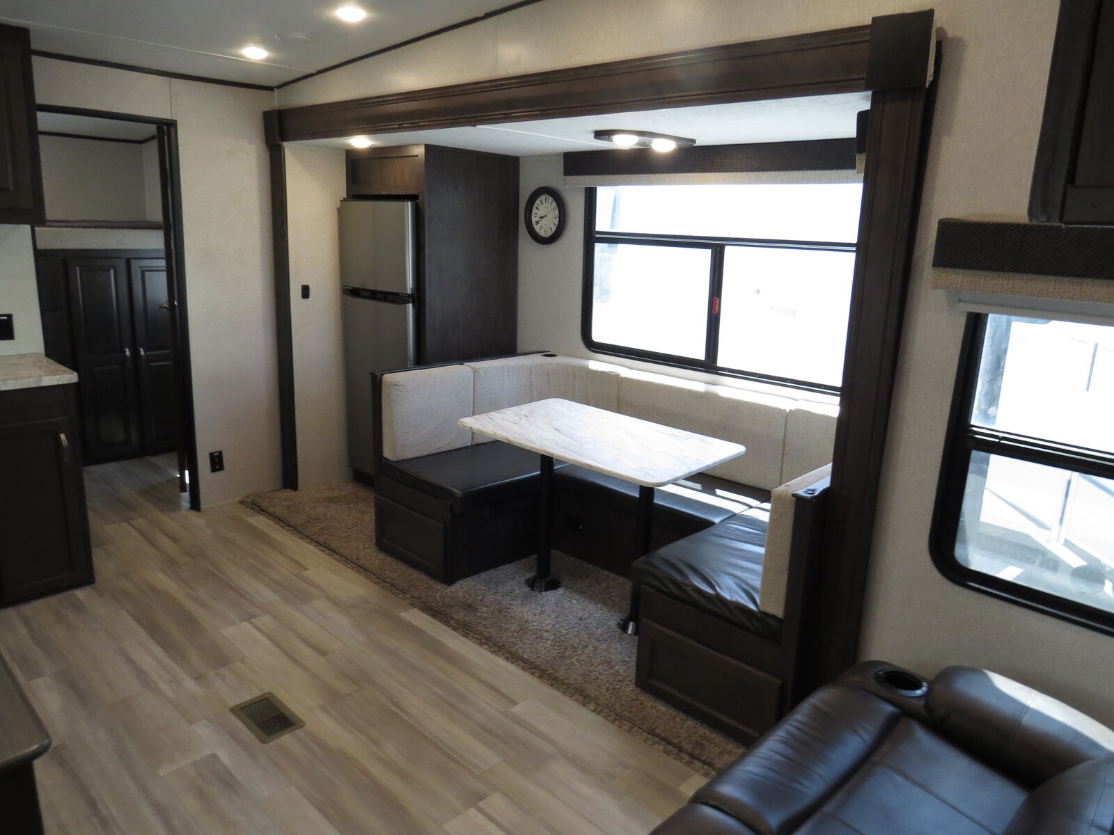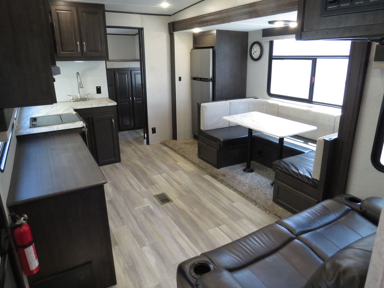 4 Bunks, 1 Slide out, BIG Bunk Room!, Underbelly Cover, Big U shaped Dinette Slide out, Front Queen walk around bed, Side Kitchen, Fireplace, Lots of counter space, Electric patio awning, Fiberglass Exterior, A/C unit and Heat.