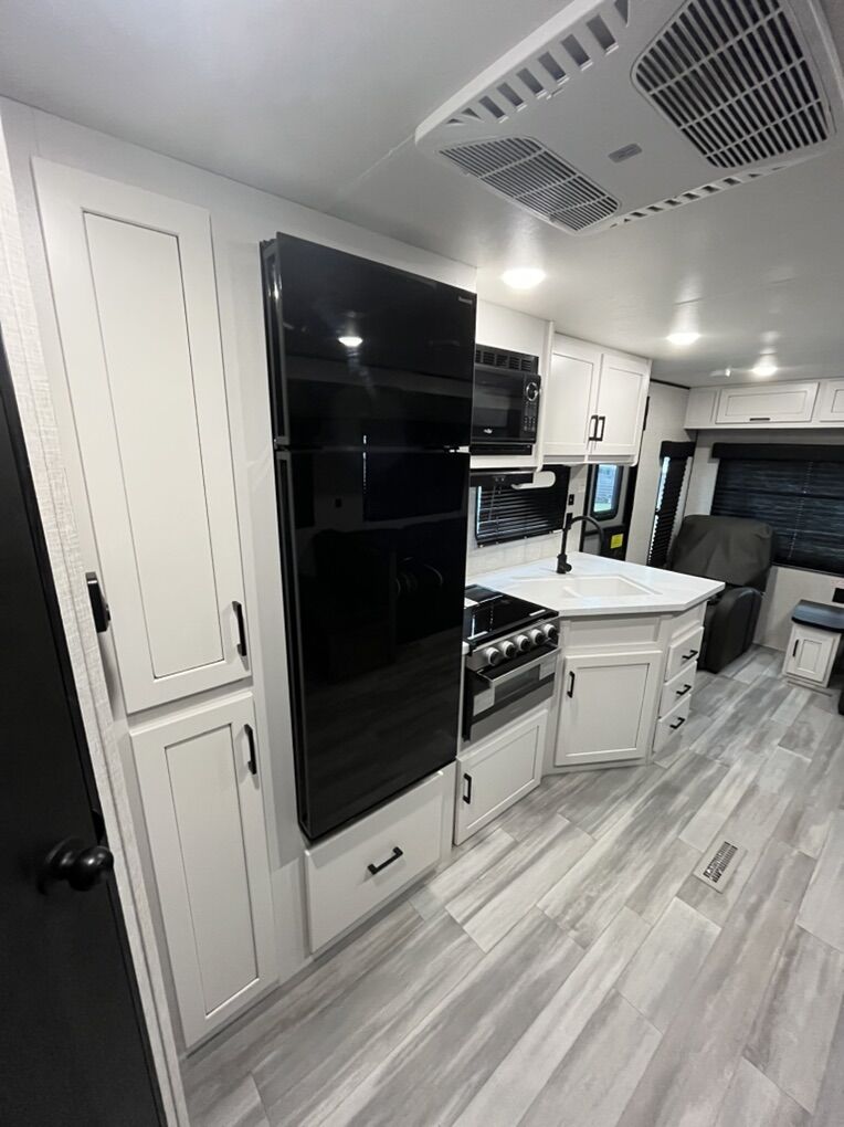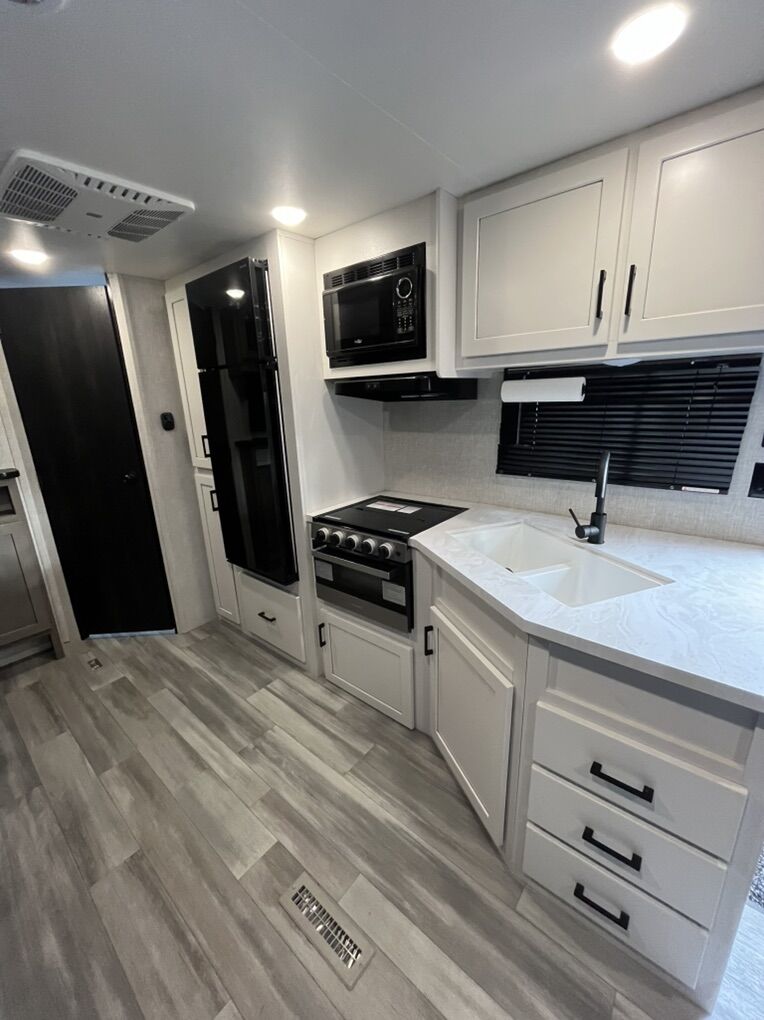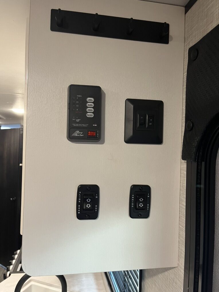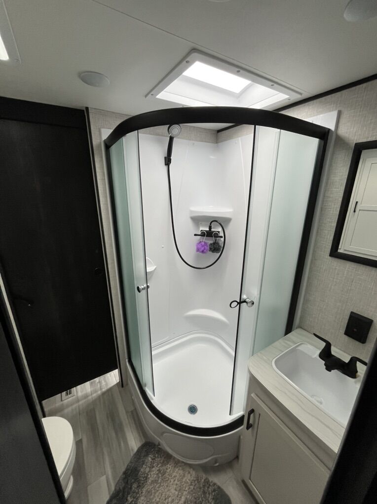 Gross Vehicle Weight Rating 7,500lbs Fresh Water Capacity 76 gal Furnace 20,000 btu Water heater - tankless Air Conditioning 200 watt Solar Panel w/30 amp digital controller Backup Camera Outdoor/Indoor Speakers Awning TONS of storage Large shower Sleeps 6 / Queen bed, foldout kitchen table, fold out couch (also has 2 recliners)