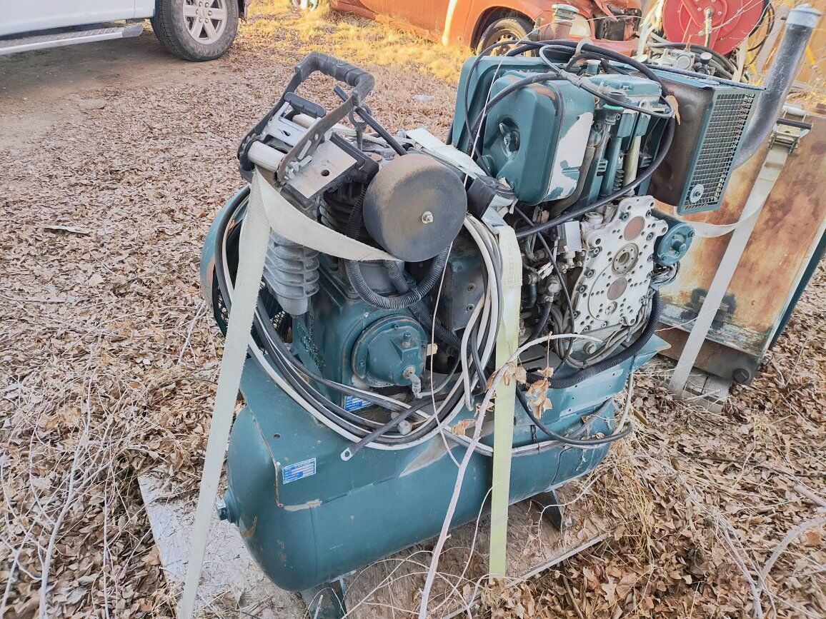 Diesel engine powered air compressor. can be used as a regular air compressor for powering tools or is part of a system for pressurizing pumps used on fuel tanks I have a number of tanks as well along with the fuel pump reels willing to sell separately. refer to other stuff I have listed Call or Text Ray 801-430-5120