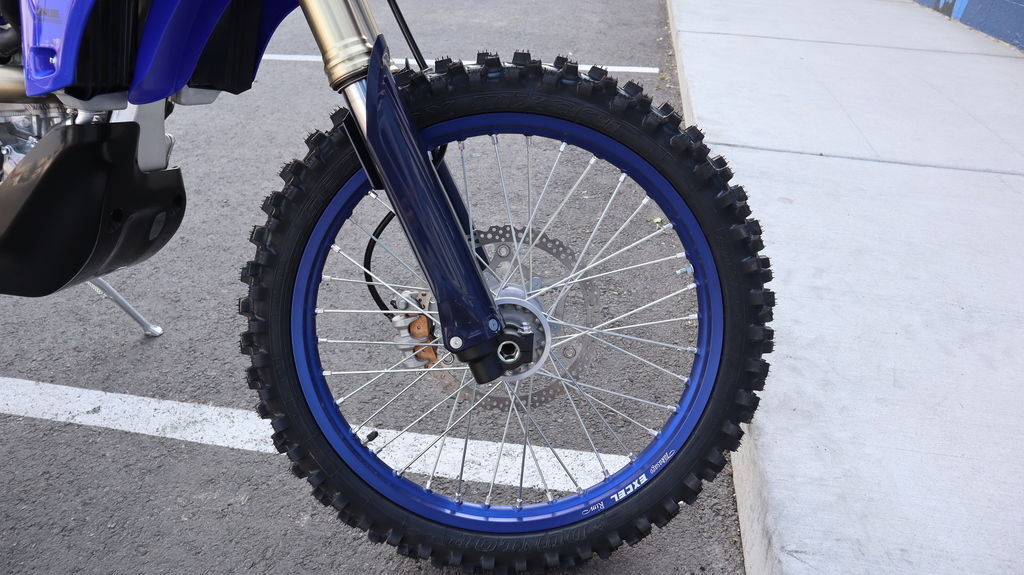 Based on the YZ450F, the YZ450FX adds XC-specific features like a wide-ratio transmission, 18" rear wheel, side stand, skid plate, revised ECU and suspension settings, and a lower seat height for off-road agility. It's tuned to perform in tight woods and open trails alike.