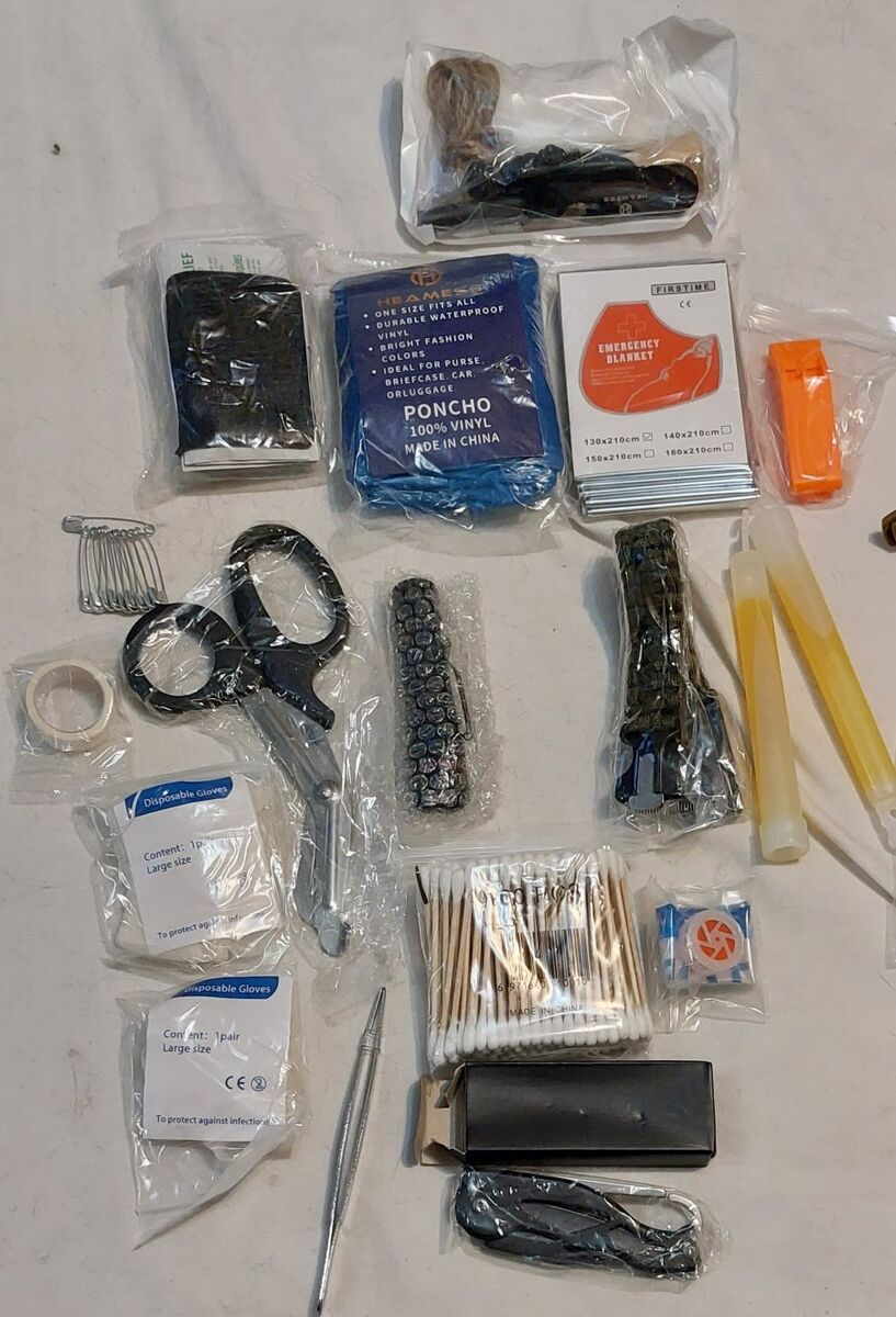 Venmomedical/ survival kit perfect for hiking/camping or anywhere you might need cool stuff that helps people. I always bring mine whenever I play airsoft I added some band-aids and batteries and tools and some other stuff to help on the feild and I've used it every time. comes with: knife flashlight Scissors fire starter kit glow sticks 2 q tips medical tape/alcohol wipes/medical wipes tweezers water proof poncho medical gloves emergency Whistle Para cord bracelet with compass so things have multi purpose like can open and screw driver stuff like that.