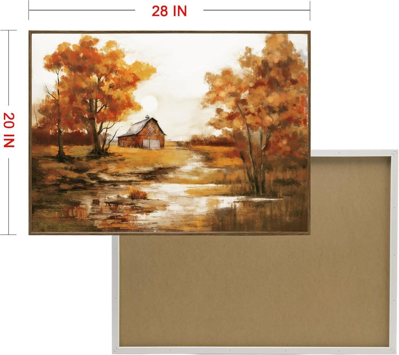 Retail Title: ArtbyHannah Rustic Framed Canvas Wall Art, Landscape Fall Wall Art with Autumn Barn & Country Farmhouse Scene, for Living Room Bedroom Office Decor, 20"x28"