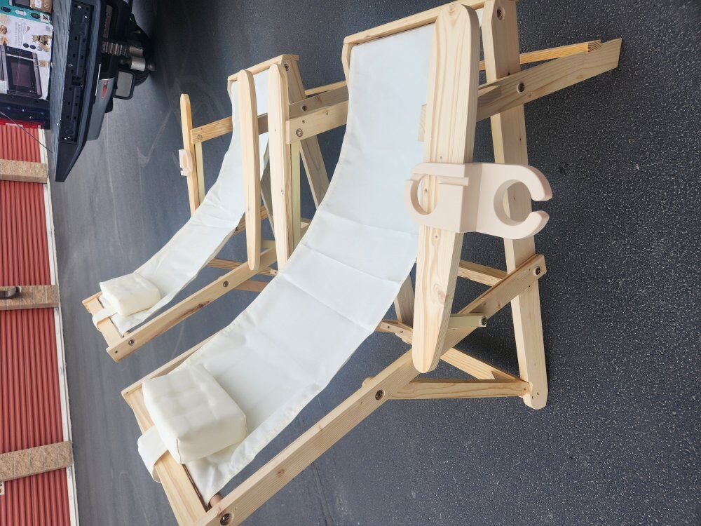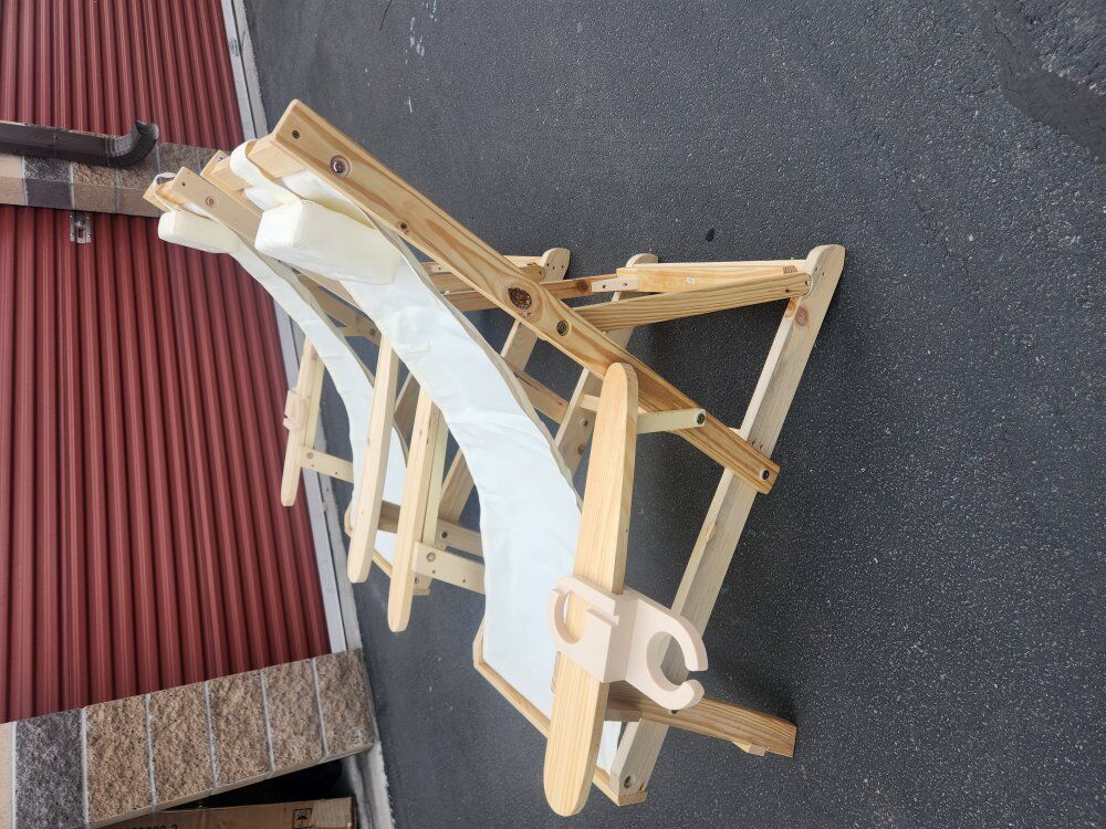 Adjustable padded headrest provides increased support and comfort Foldable design allows for easy transport and storage Heavy-duty canvas material for strength and comfort. Extra wide armrests for additional support. Cup holder is included.