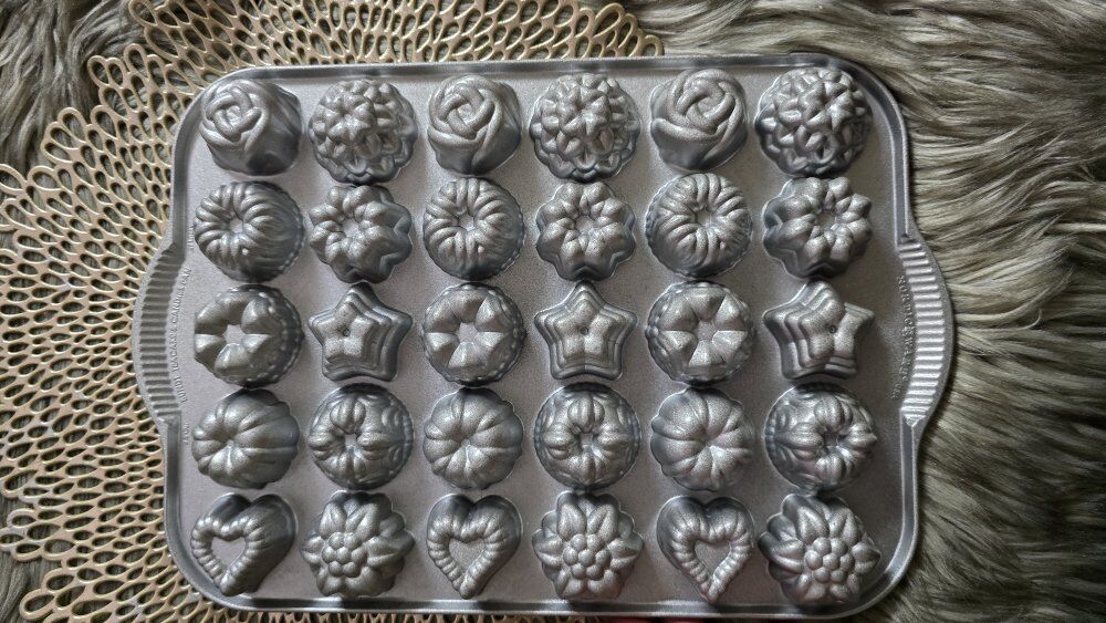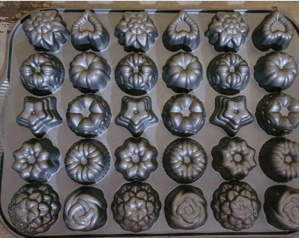 Nordic Ware Bundt Tea Cake and Candies Pan 2.5 Cup Stars Rosettes Hearts.