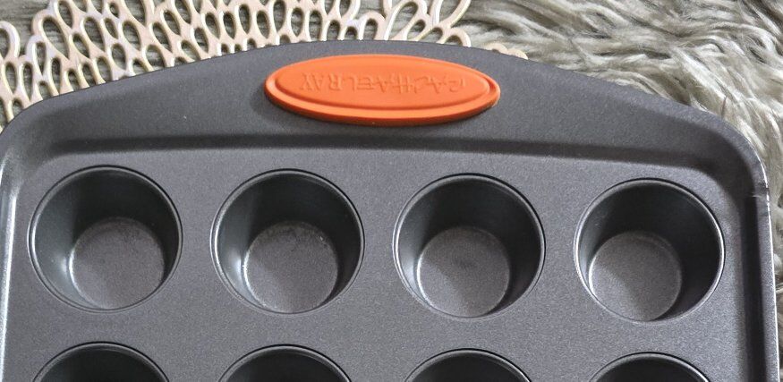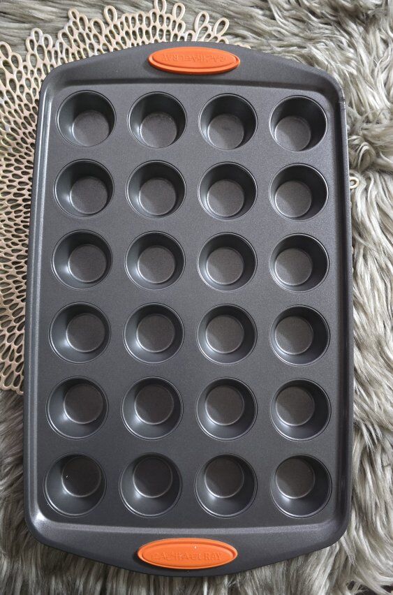 NutriChef 24 Mini Cup Muffin Non Stick Baking Pan, Attractive Gray Carbon Steel Bake Pan with Orange Silicone Handles, Commercial Grade Restaurant Quality Metal Bakeware, Compatible with Model NCSBS10S.