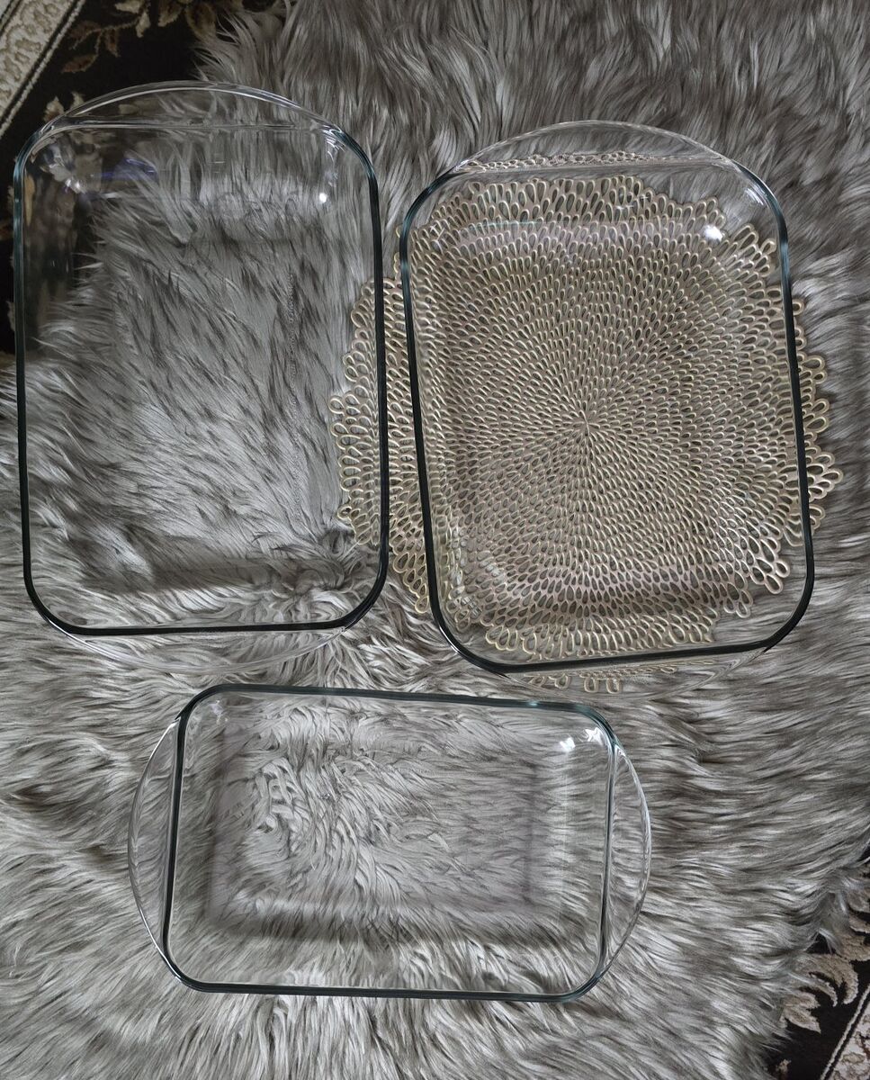 3 pyrexes small, medium and large. Excellent quality and condition. 3 of them in one piece.
