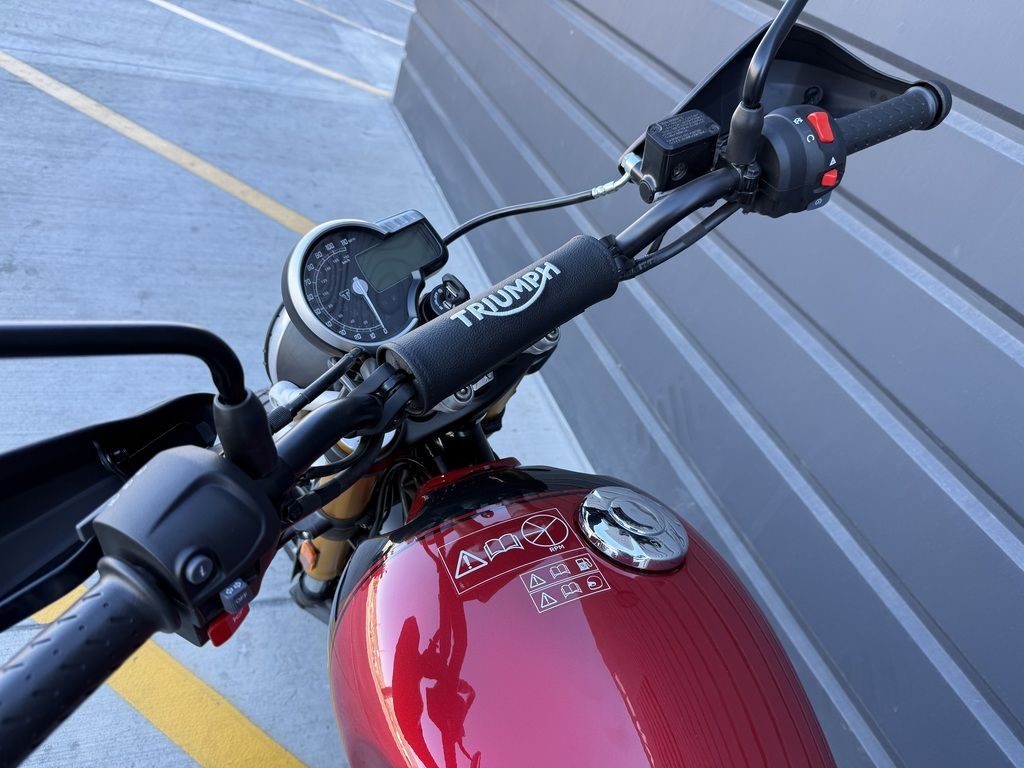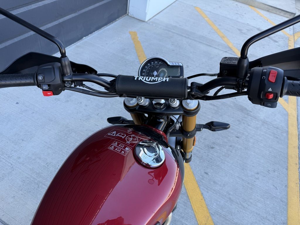 A commanding riding position with wide adjustable handlebars and flat high-grip foot pegs give the Scrambler 400 X commanding road presence and comfort with excellent off-road control.