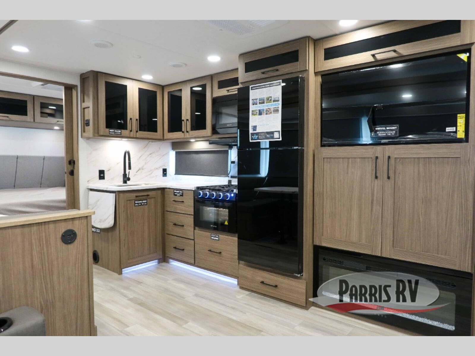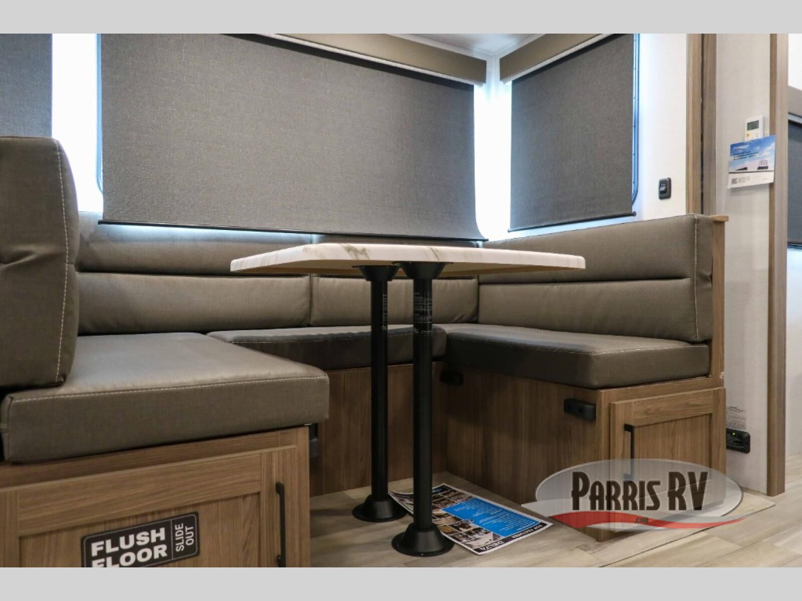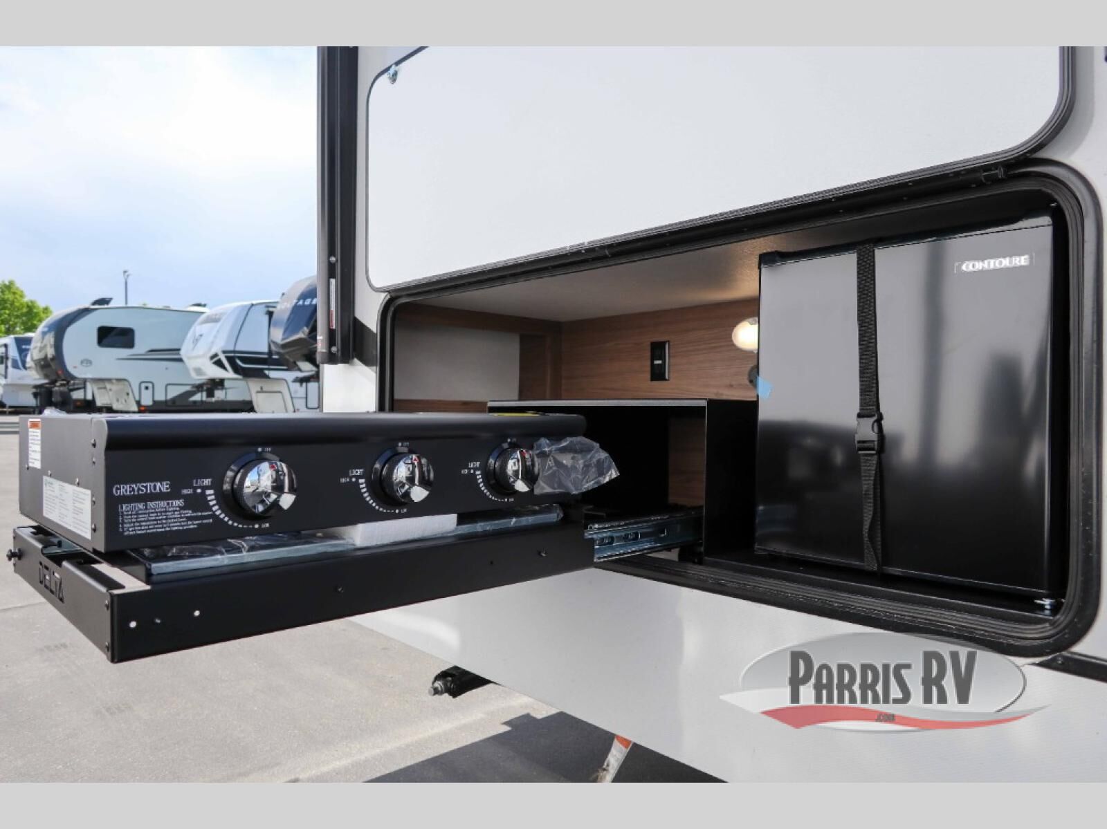 The perfect travel trailer for a larger family or one that enjoys traveling with friends! One large slide opens up the interior living space nice and features a U-shaped dinette and theater seating to provide plenty of seating for everyone. Enjoy the 40" HDTV opposite the seating for a movie indoors, and game night will be easy with everyone at the dinette which can also be converted for added sleeping if needed. The double entry doors will make loading and unloading simple, and allows you to easily slip in and out of the private bedroom for a morning walk. You can easily prepare all of your favorite meals and snacks with the kitchen amenities provided inside. A three burner range allows you to easily cook indoors, or you can enjoy cooking outside using the outdoor griddle/grill if you like. There is a 10 cu. ft. 12V refrigerator to keep all of your perishables and drinks nice and cold, plus a large sink for dishes and cleaning up, and there is also a flip-up counter extension for more prep space. You will also appreciate the rear corner bath featuring a 30" x 36" shower, vanity with sink, soft close porcelain toilet with foot flush, and linen cabinet for your towels.