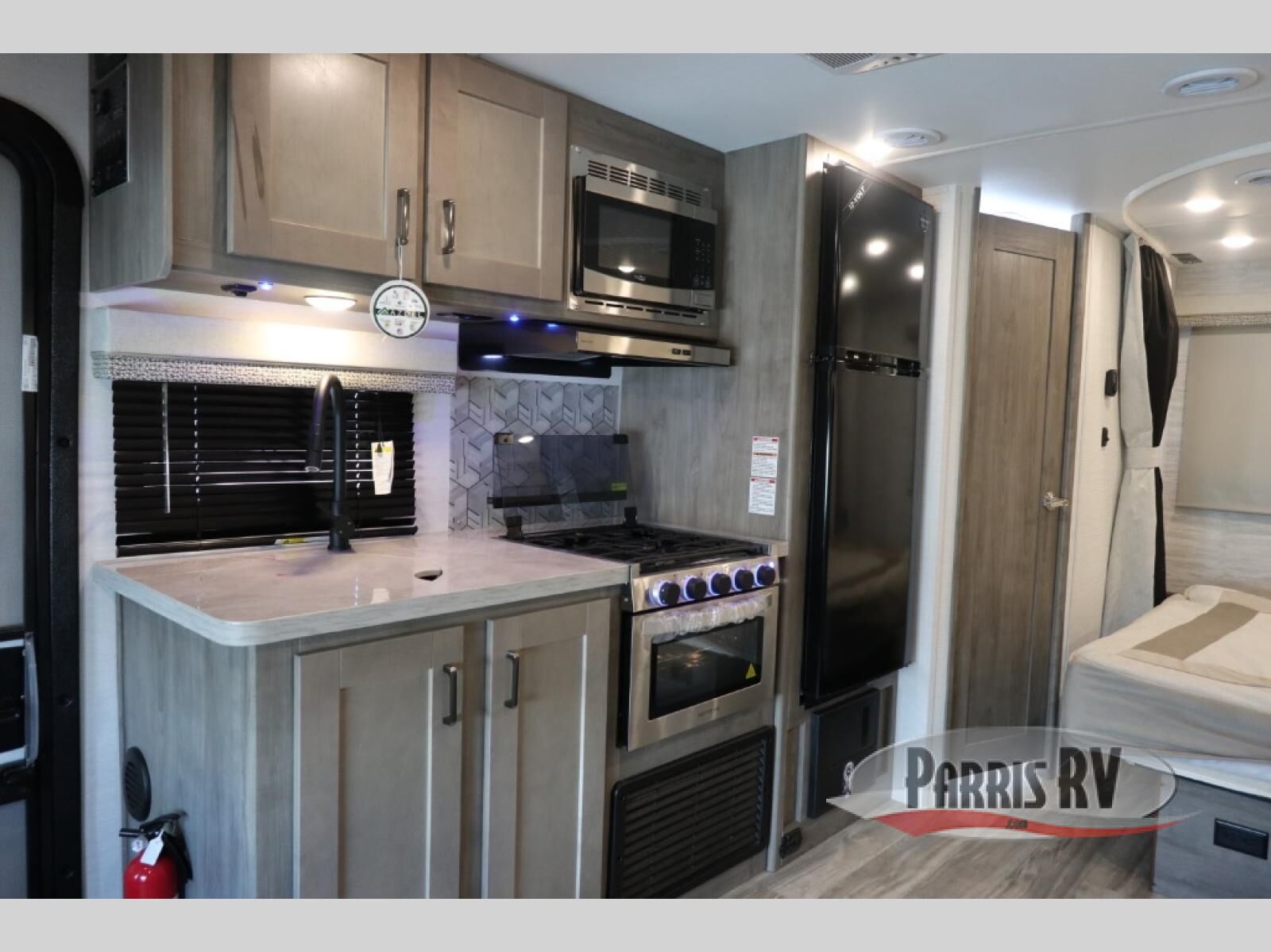 With any Gulf Stream RV BT Cruiser Class B+ gas motorhome, you will appreciate the rugged, reliable, fuel efficient Ford E-350 or E-450 chassis depending on the coach you choose, and the ease of maneuvering the motorhome on two-lane roads, city streets and into tight parking spaces! Some key features include the smooth fiberglass laminated sidewalls, and fiberglass front and rear caps, as well as the kitchen appliances and the soft pleated privacy shades. Some of the included features within the BT Cruiser Bonus Package are a 4.0 kW Onan generator to keep things running, fiberglass running boards for easy entry and exit, the IRD dual battery charging system, upgraded LED interior and exterior lighting, and vinyl flooring for easy care to mention a few. Make your selection today, and enjoy the drive as much as camping!