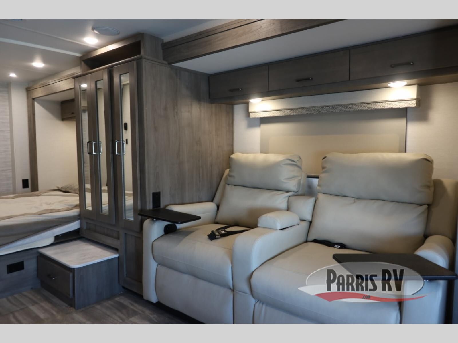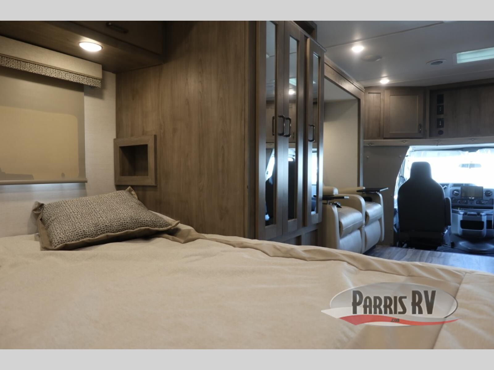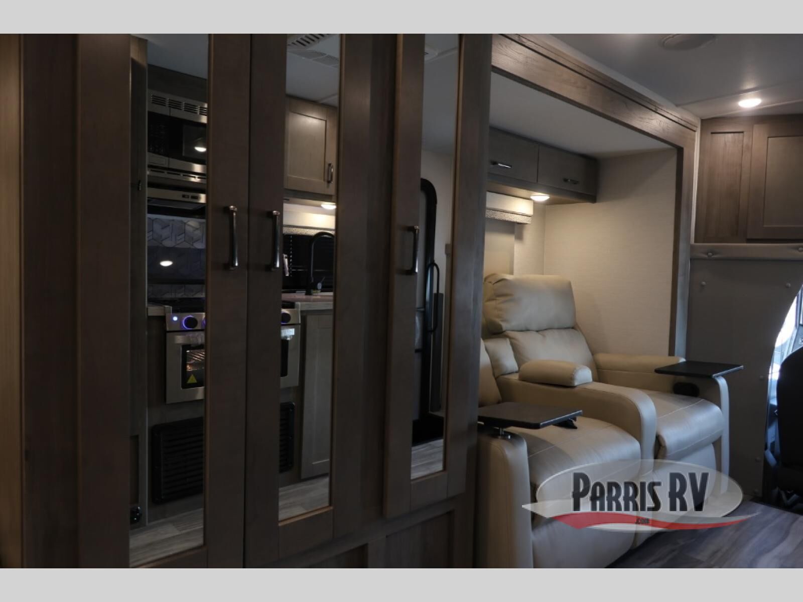 Get ready to see the summer sunshine, the fall colors, and/or the snow on the mountains when you travel in this easy to drive coach! The full-wall slide will impress you with all the floor space from front to back. You can sleep like royalty on the RV queen bed, store your clothes in the wardrobe and food in the pantry, and the booth dinette gives you a place to dine inside. The kitchen offers full amenities to make warm meals and keep leftovers cold in the refrigerator. And you can stay clean with the full bathroom in the rear corner. And don't forget about the electric awning outside, giving you an outdoor living area.
