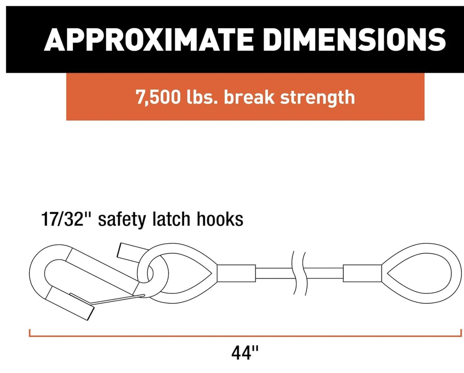Used 2-Pack, 44-Inch Vinyl-Coated Trailer Safety Cables, 17/32-In Snap Hooks, 7,500 lbs Break Strength, Black