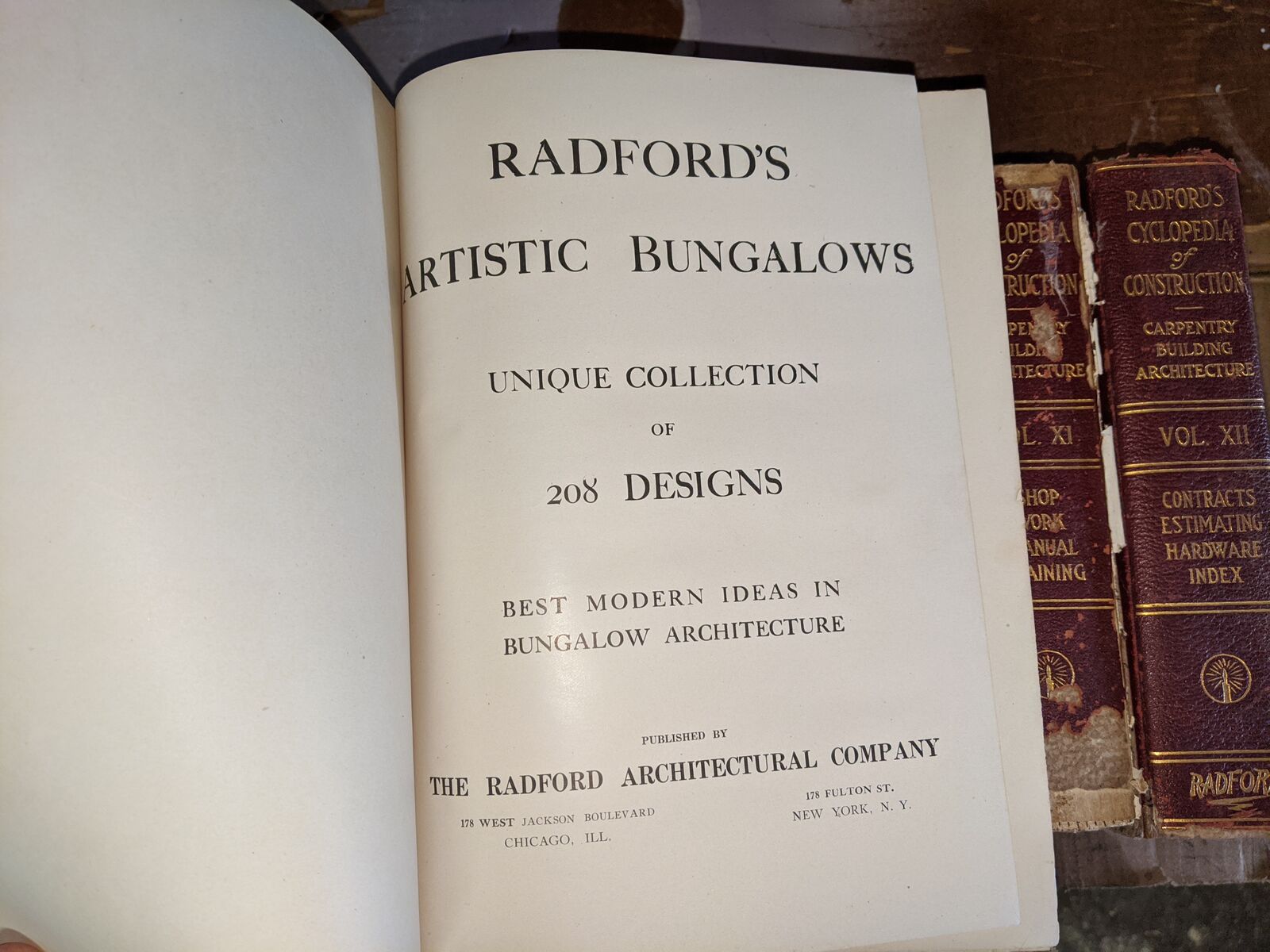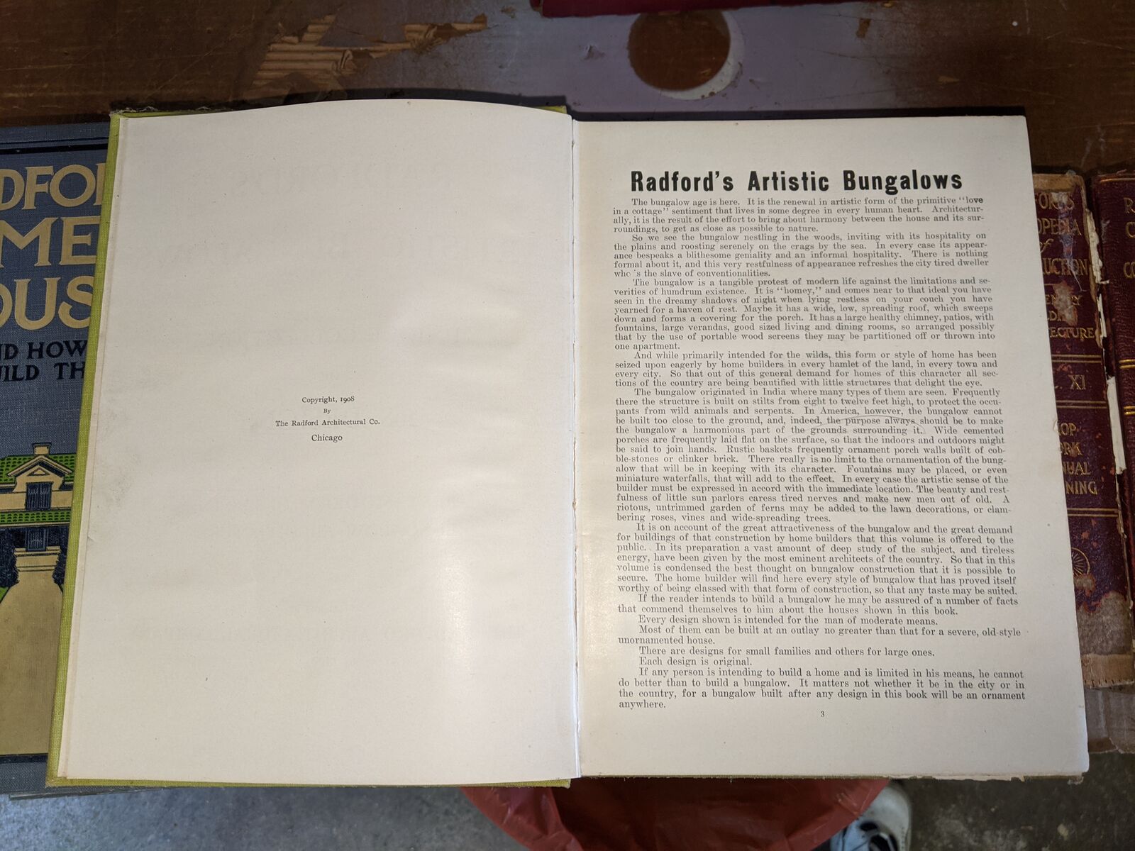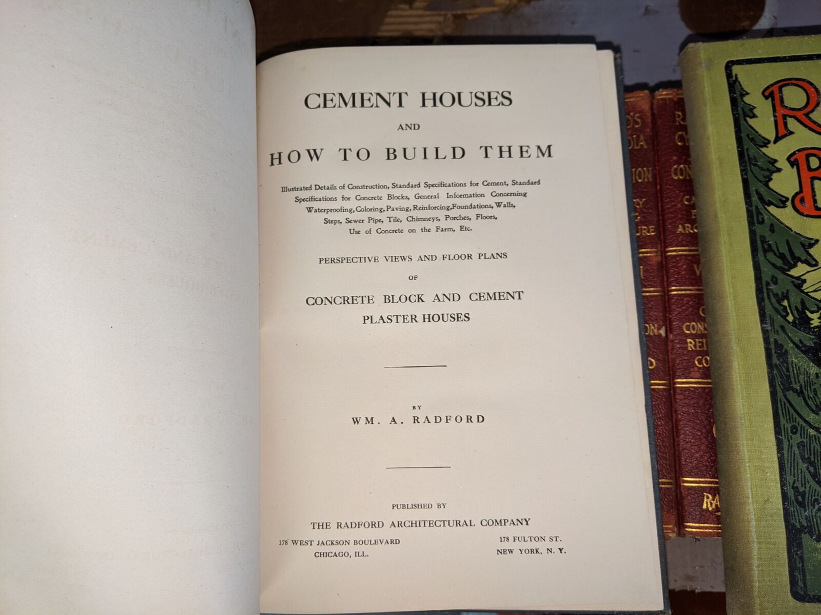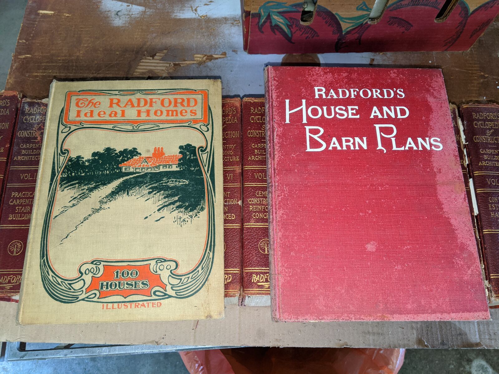 Radford's Architectural Books 1909 Set Of Five. Books include Bungalows, Cement Houses, Ideal Homes, House & Barn Plans and Portfolio Of Plans.