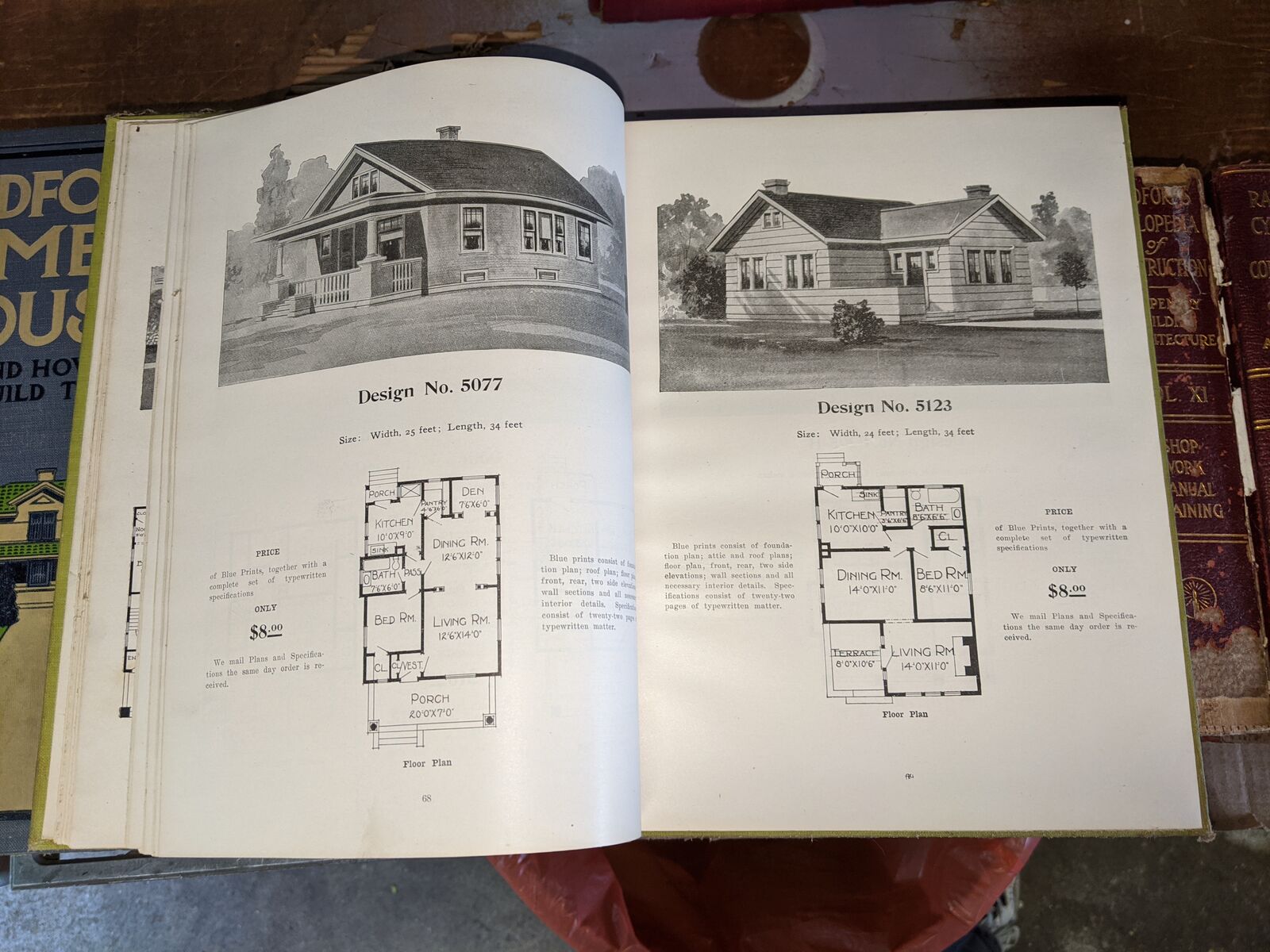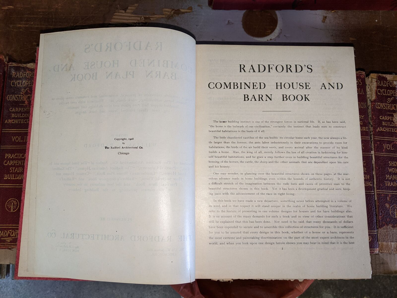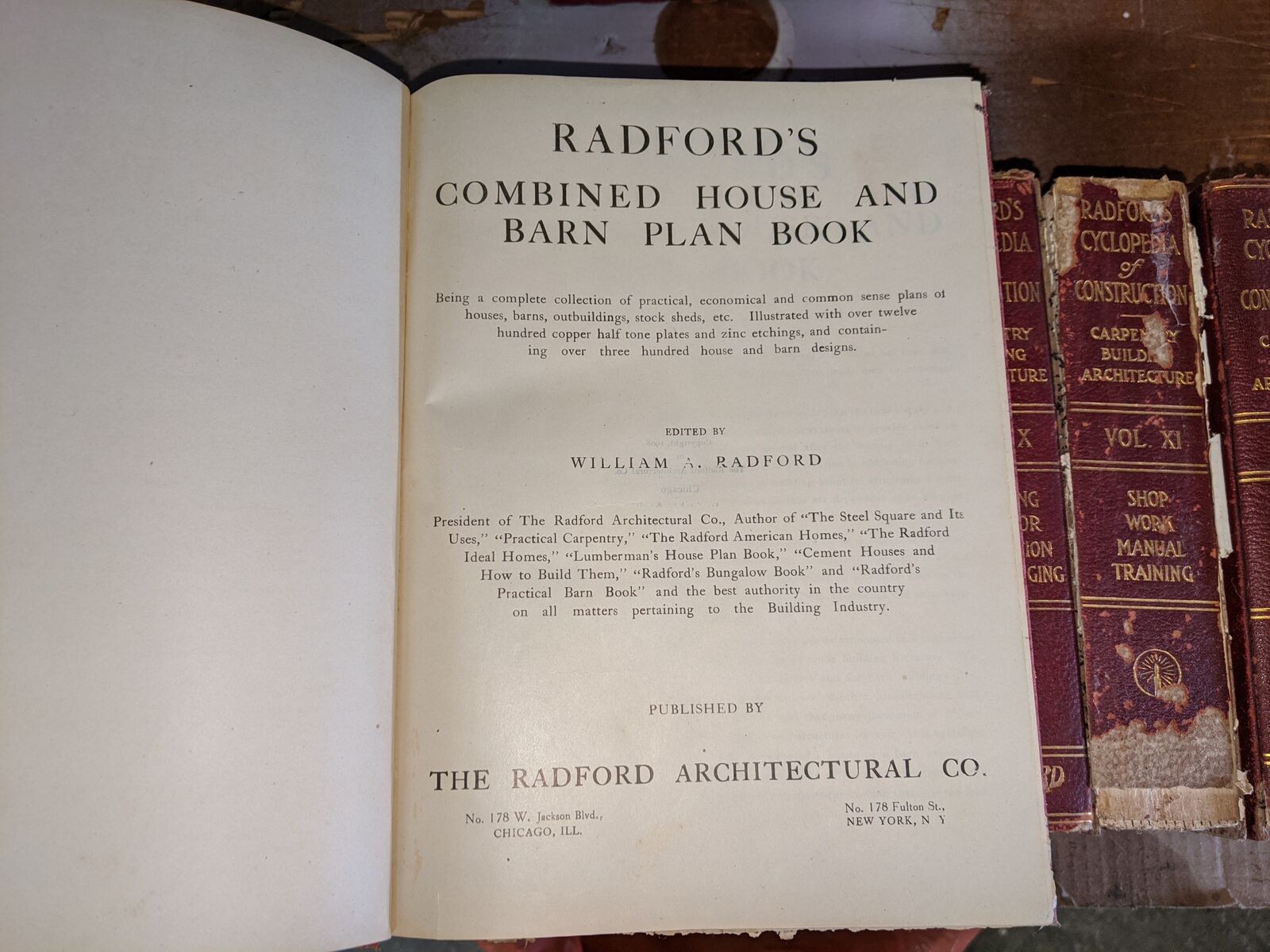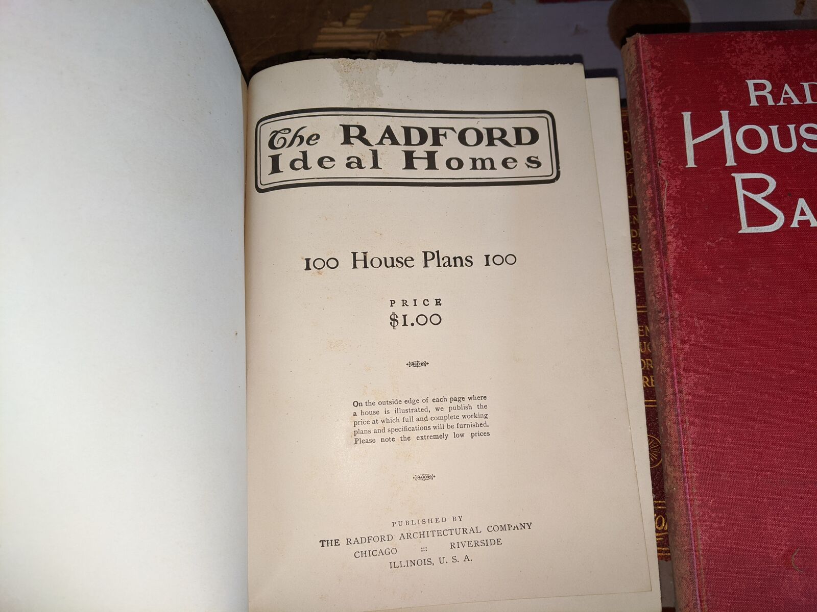 Radford's Architectural Books 1909 Set Of Five. Books include Bungalows, Cement Houses, Ideal Homes, House & Barn Plans and Portfolio Of Plans.
