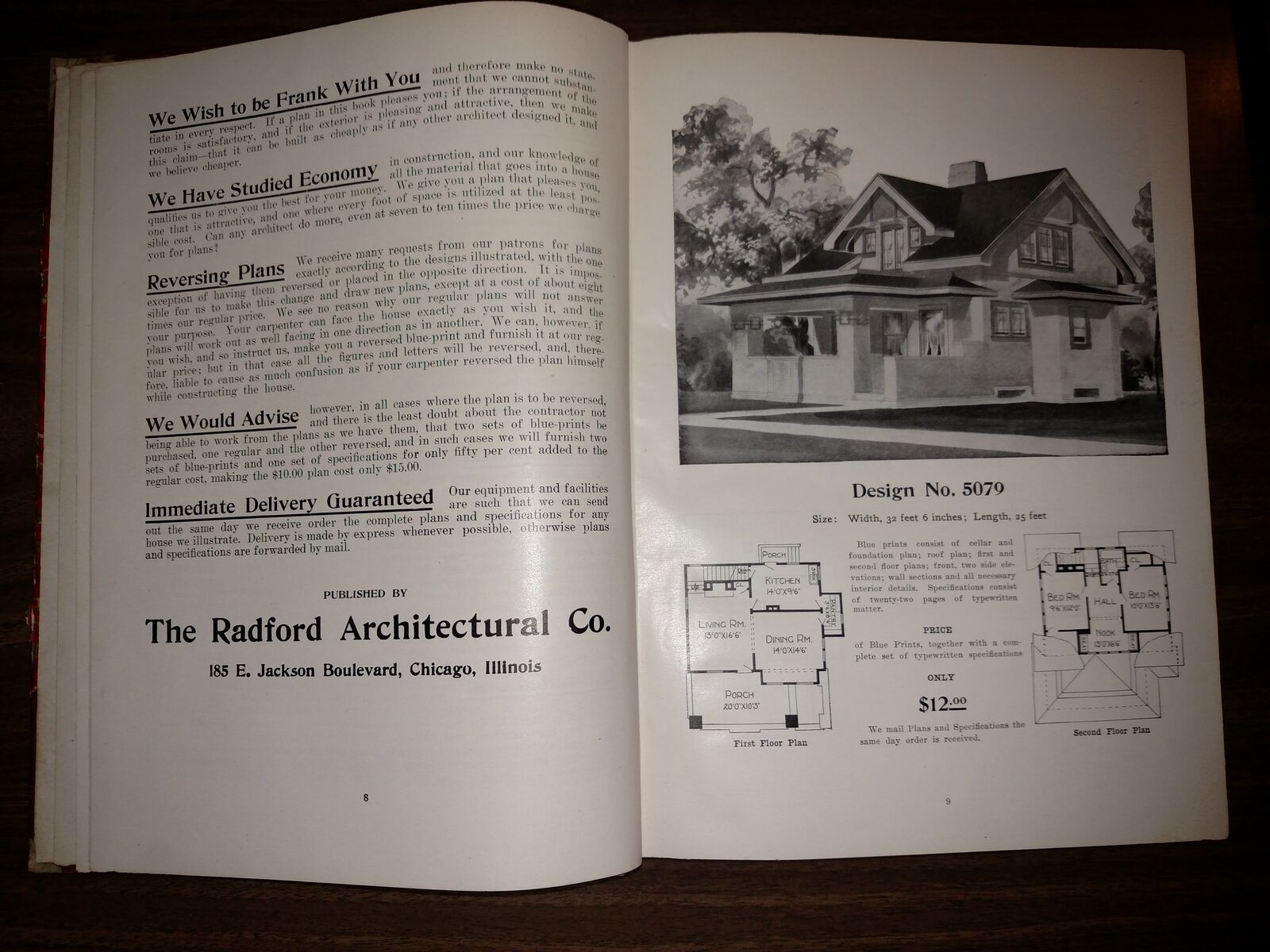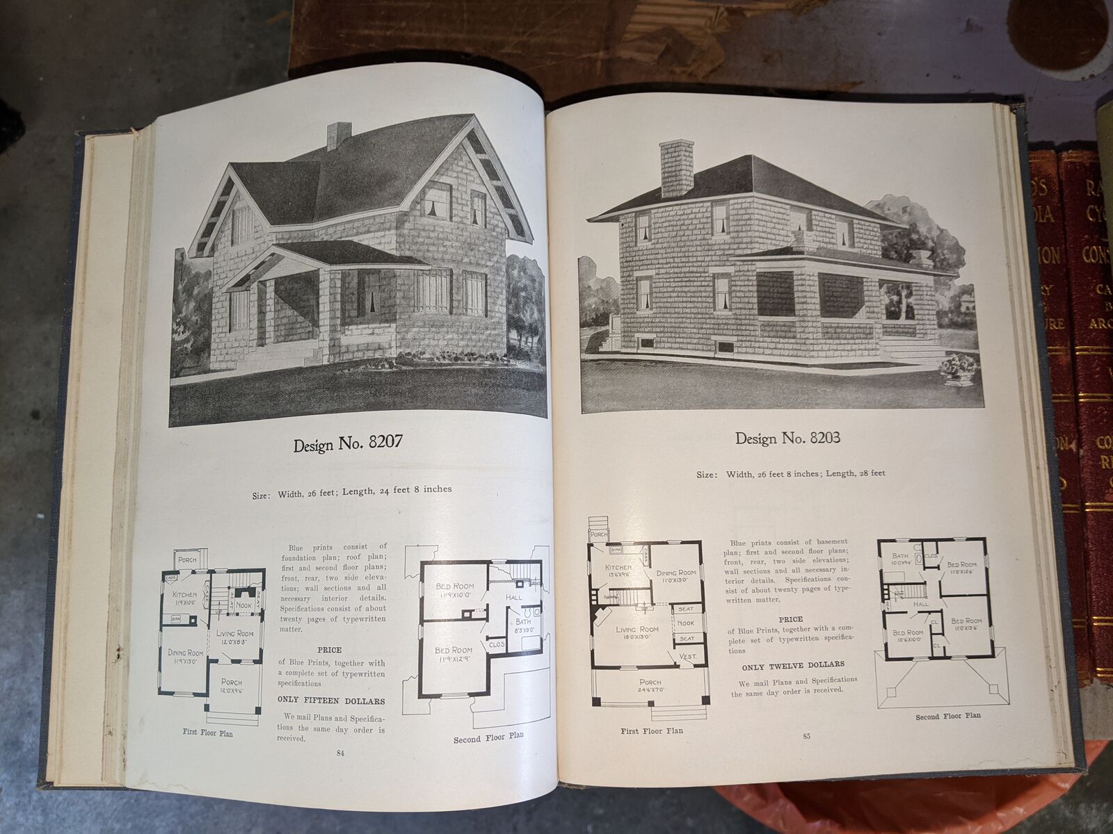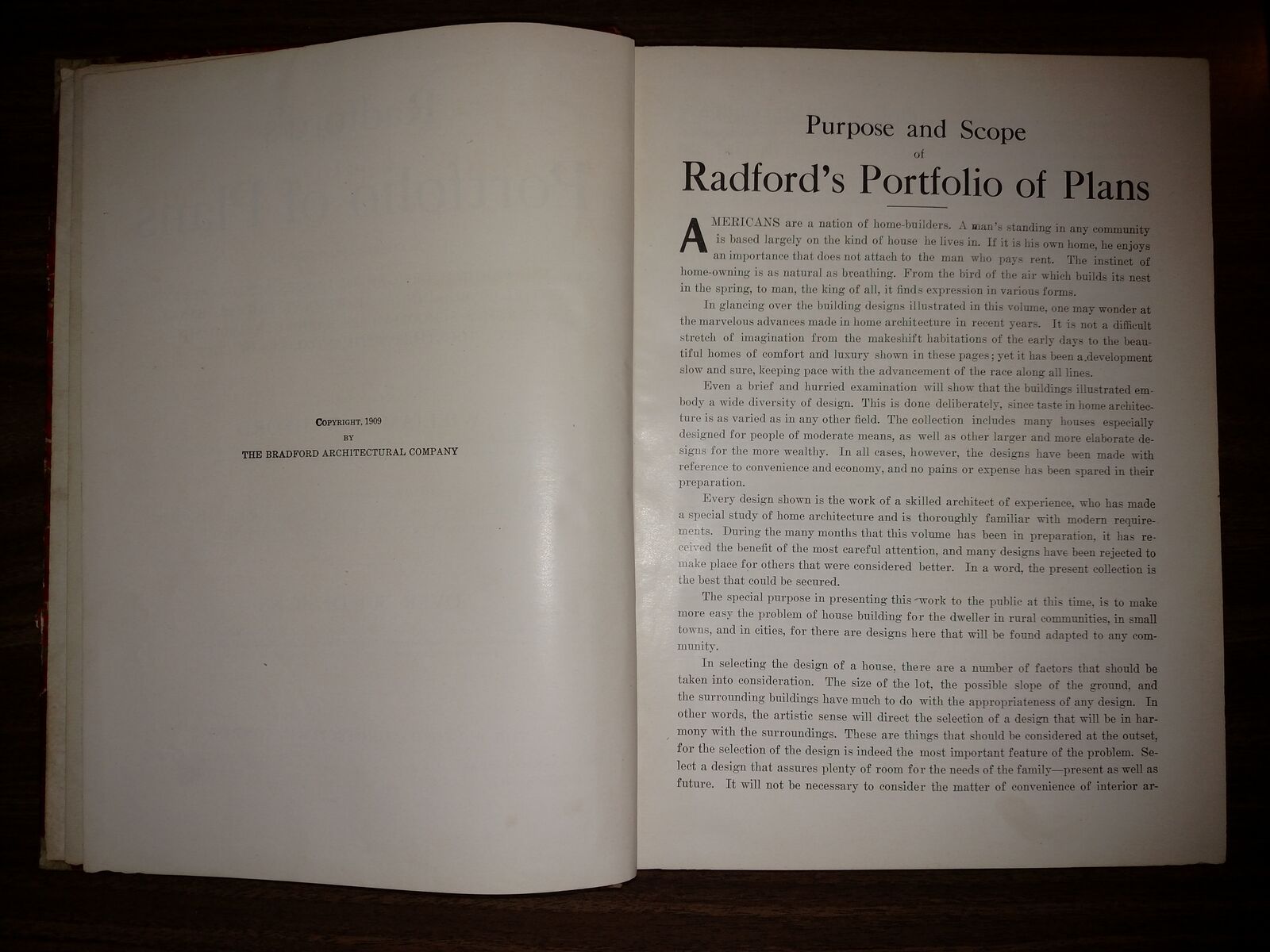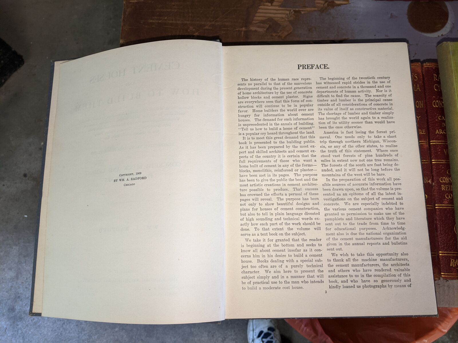 Radford's Architectural Books 1909 Set Of Five. Books include Bungalows, Cement Houses, Ideal Homes, House & Barn Plans and Portfolio Of Plans.