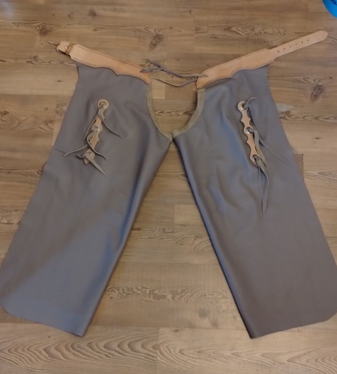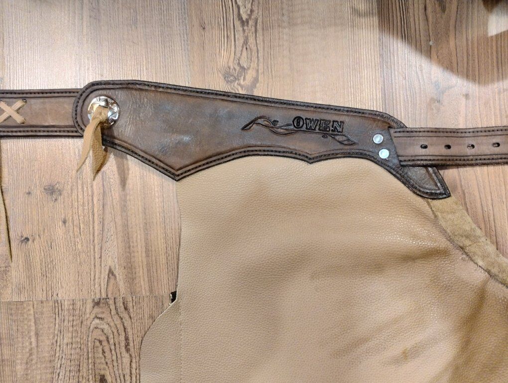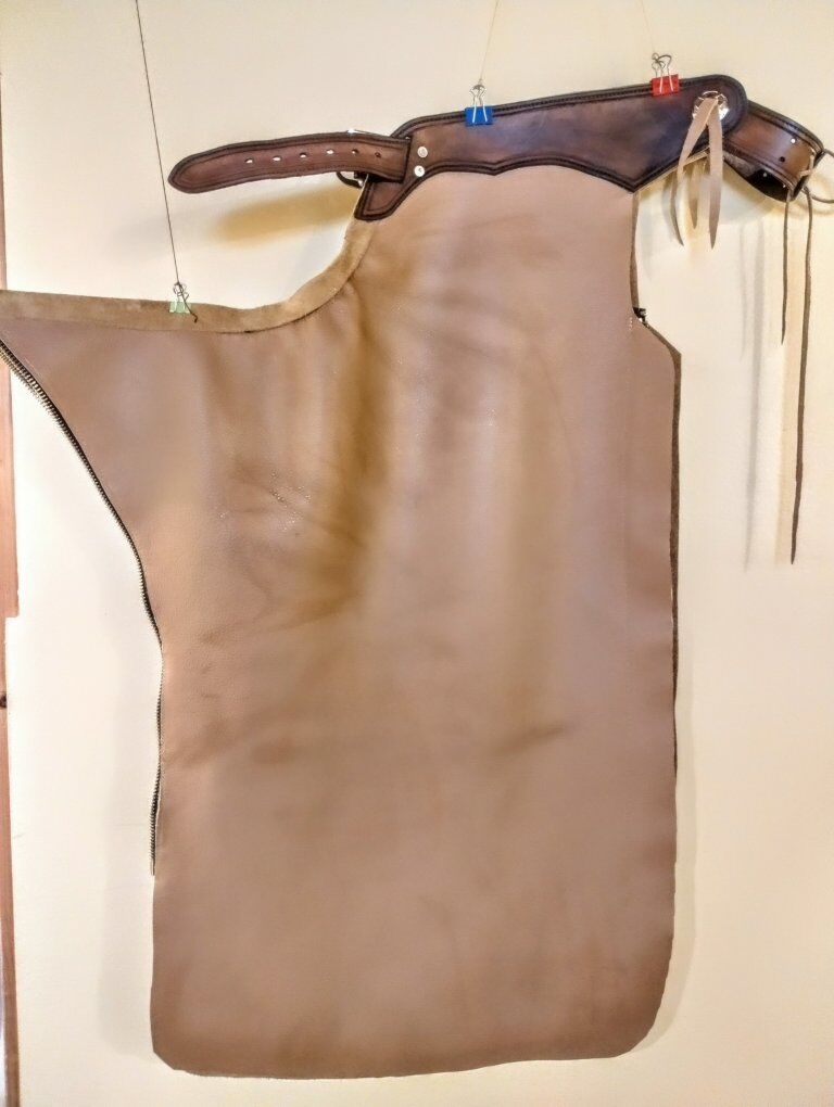 I'll hand make custom chaps, made to fit. Starting at $450 to make a custom pair. Pictured are some that I have done. The last 2 pictures are the styles that I can do. I will work closely with you to find out the best fit and style for you.
